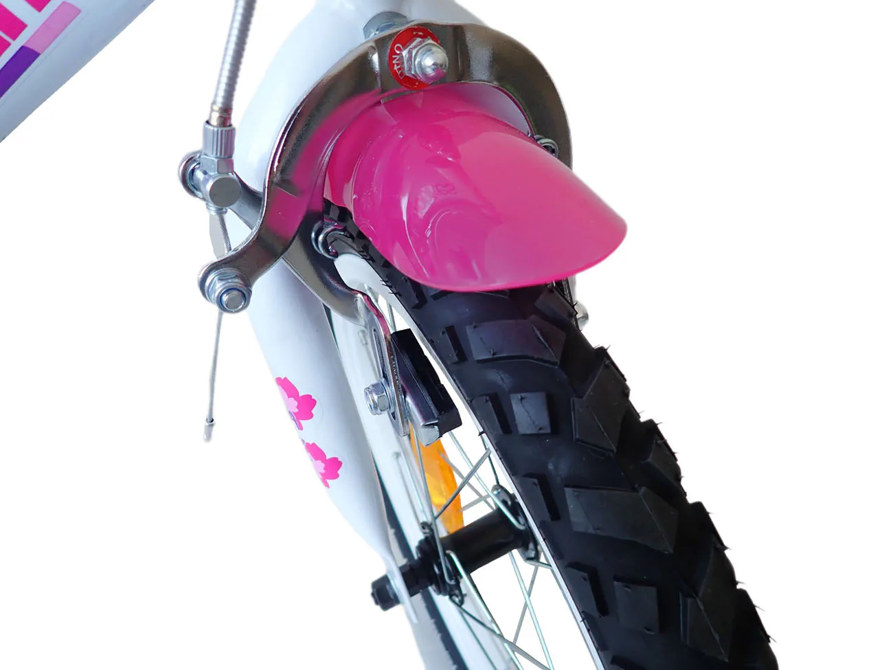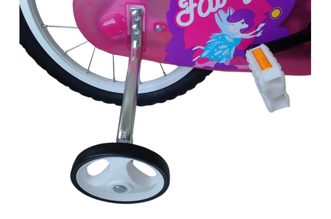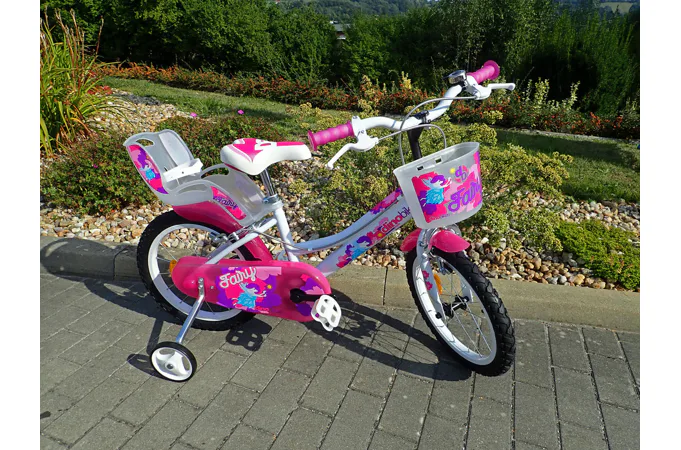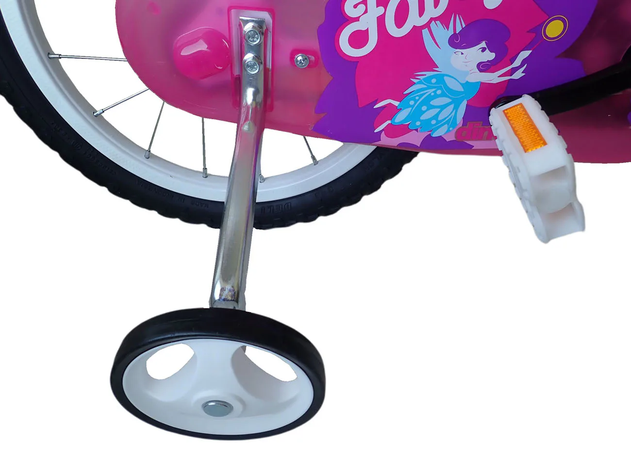 Detský bicykel Dino Bikes 164RN FAIRY má oceľové ráfiky 16" (palcov = 41 cm), nafukovacie plášte, voľnobeh a je vybavený prednou aj zadnou čeľusťovou brzdou.