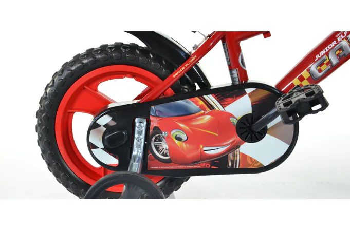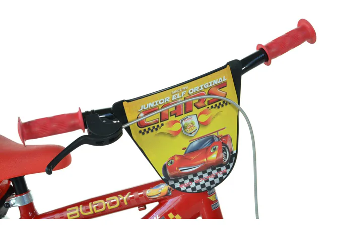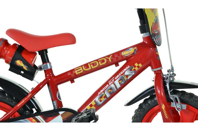 Detský bicykel Dino Bikes má obľúbenú potlač CARS. Bicykel sa vyznačuje prepracovaným dizajnom dávajúcim bicyklu športový vzhľad. Detský bicykel Dino Bikes CARS má plastové lúčové kolesá 12" (palcov = 31 cm), plášte plastové s penovou výplňou EVA, STÁLY PREVOD bez voľnobehu, súčasťou výbavy je predná čeľusťová brzda.