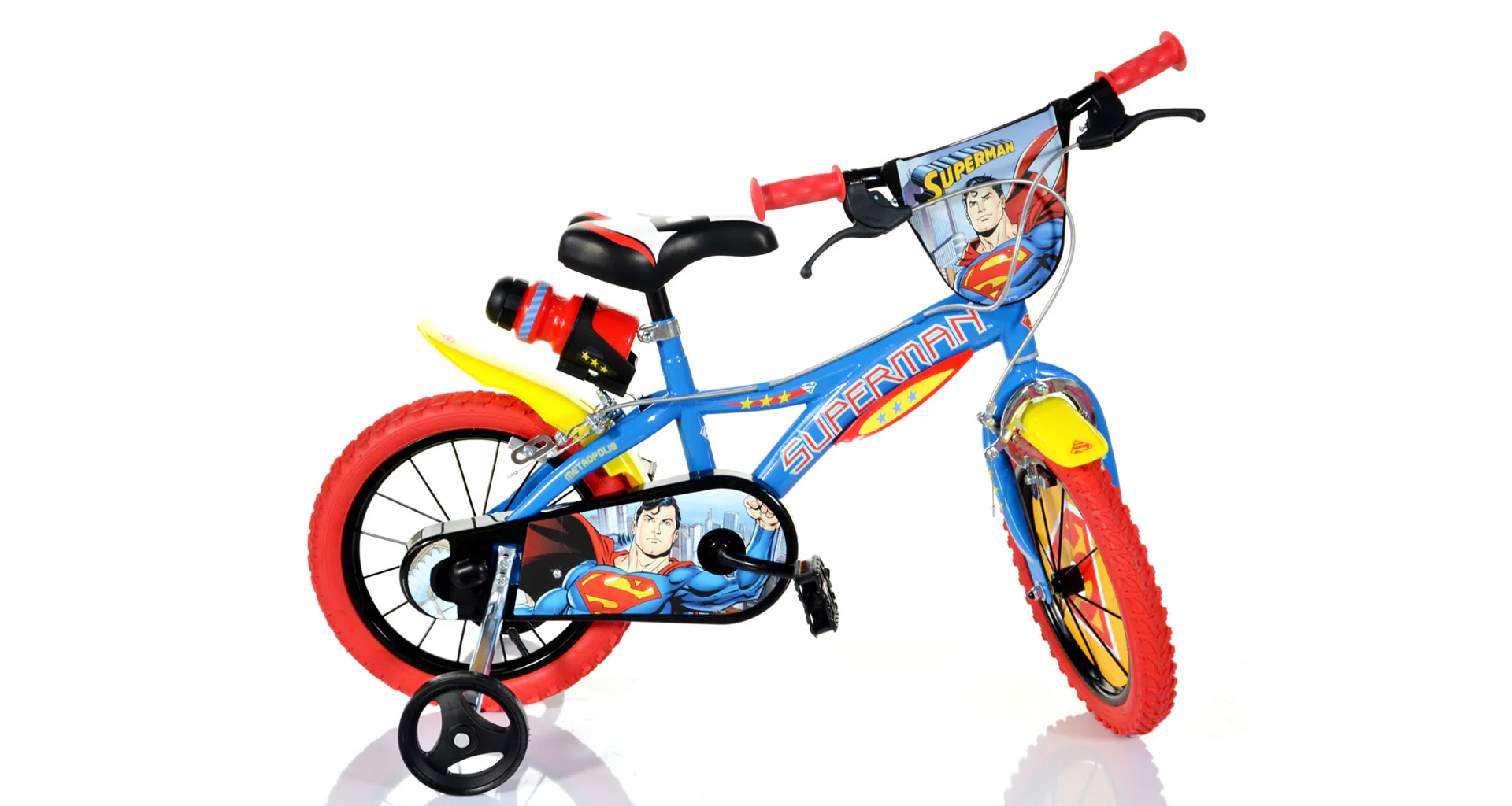 Detský bicykel Dino Bikes SUPERMAN sa vyznačuje prepracovaným dizajnom dávajúcim bicyklu ľúbivý vzhľad. Bicykel Dino Bikes SUPERMAN 14" má oceľové ráfiky 14" (palcov = 36,5 cm), nafukovacie plášte, voľnobeh. Predné aj zadné koleso je osadené čeľusťovou brzdou.