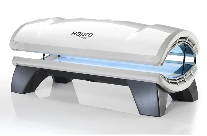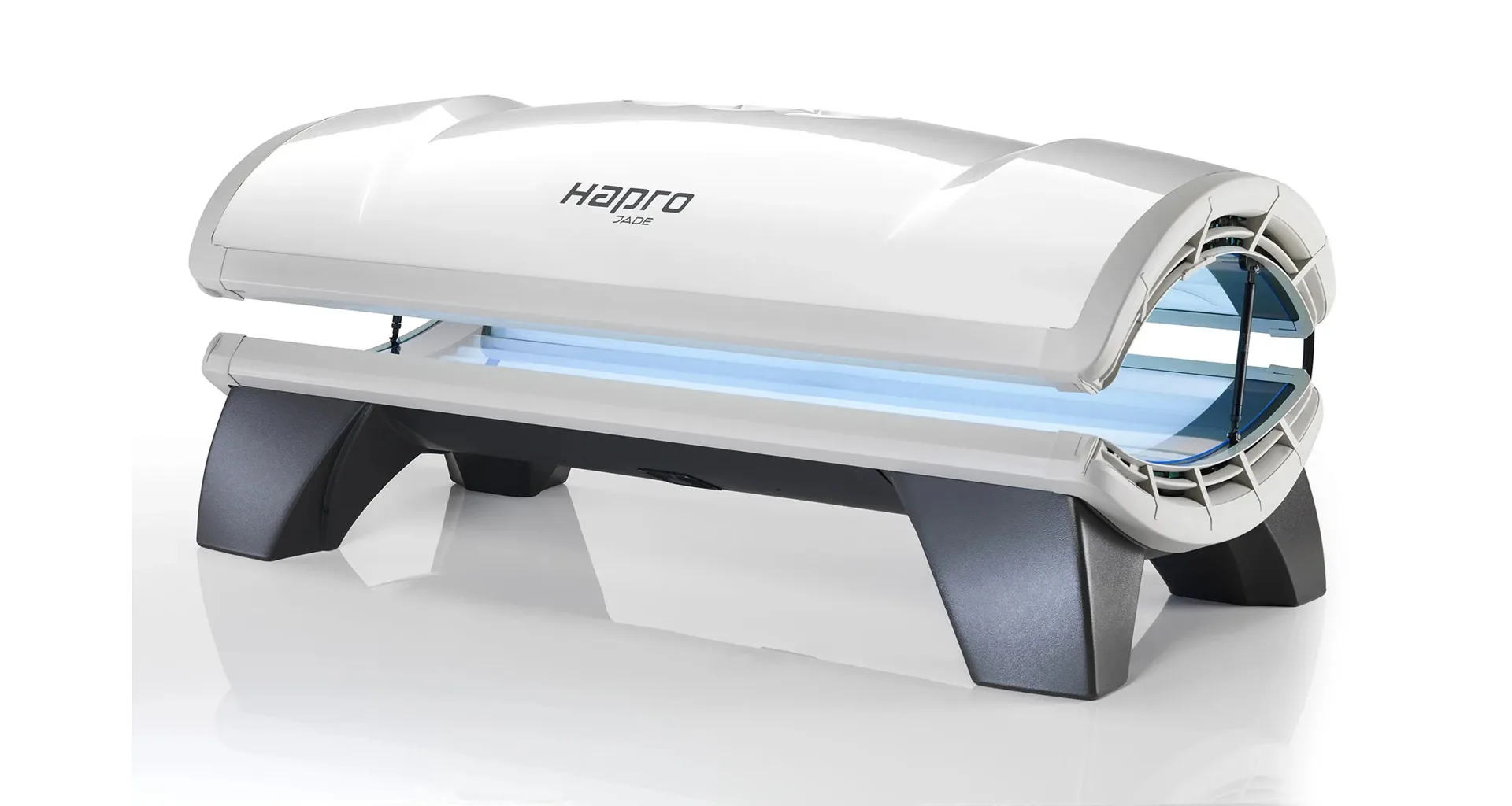 Solárium HAPRO JADE 24 Combi je kvalitné obojstranné solárium, určené pre domácnosti, hotely a pod. Snedosť našej kože nám dodáva pozitívny pocit. Doprajte si tento pocit v každom ročnom období prostredníctvom sklopného solária JADE. Tieto solária patria k úplnej špičke v domácej opaľovacej technike. Moderné tvary a elegantné farby začlenia solárium do každého interiéru. Obojstranné solária Jade Combi ponúkajú komfort pri ležaní a jednoduchú údržbu.