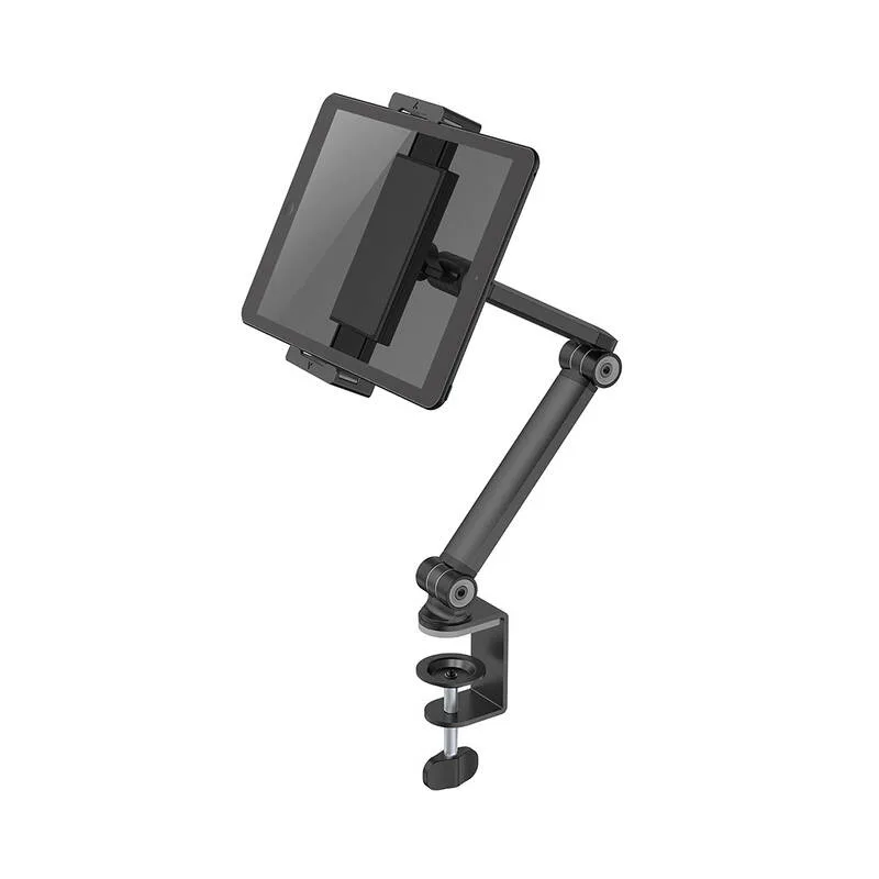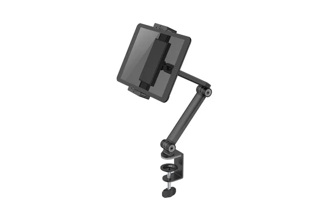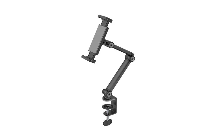 Držiak tabletu DS15-545BL1 ponúka vynikajúcu flexibilitu vďaka možnosti nastavenia výšky, náklonu v rozsahu 270 °, otáčania v rozsahu 104 ° a rotácii o 360 °. To znamená, že môžete ľahko prispôsobiť polohu tabletu podľa svojich potrieb, či už ho používate na prácu, štúdium alebo zábavu. Nastavenie ramena ide zaistiť v pevnej polohe, aby sa nepohybovalo. S nosnosťou až 1 kg je tento držiak vhodný pre väčšinu moderných tabletov.