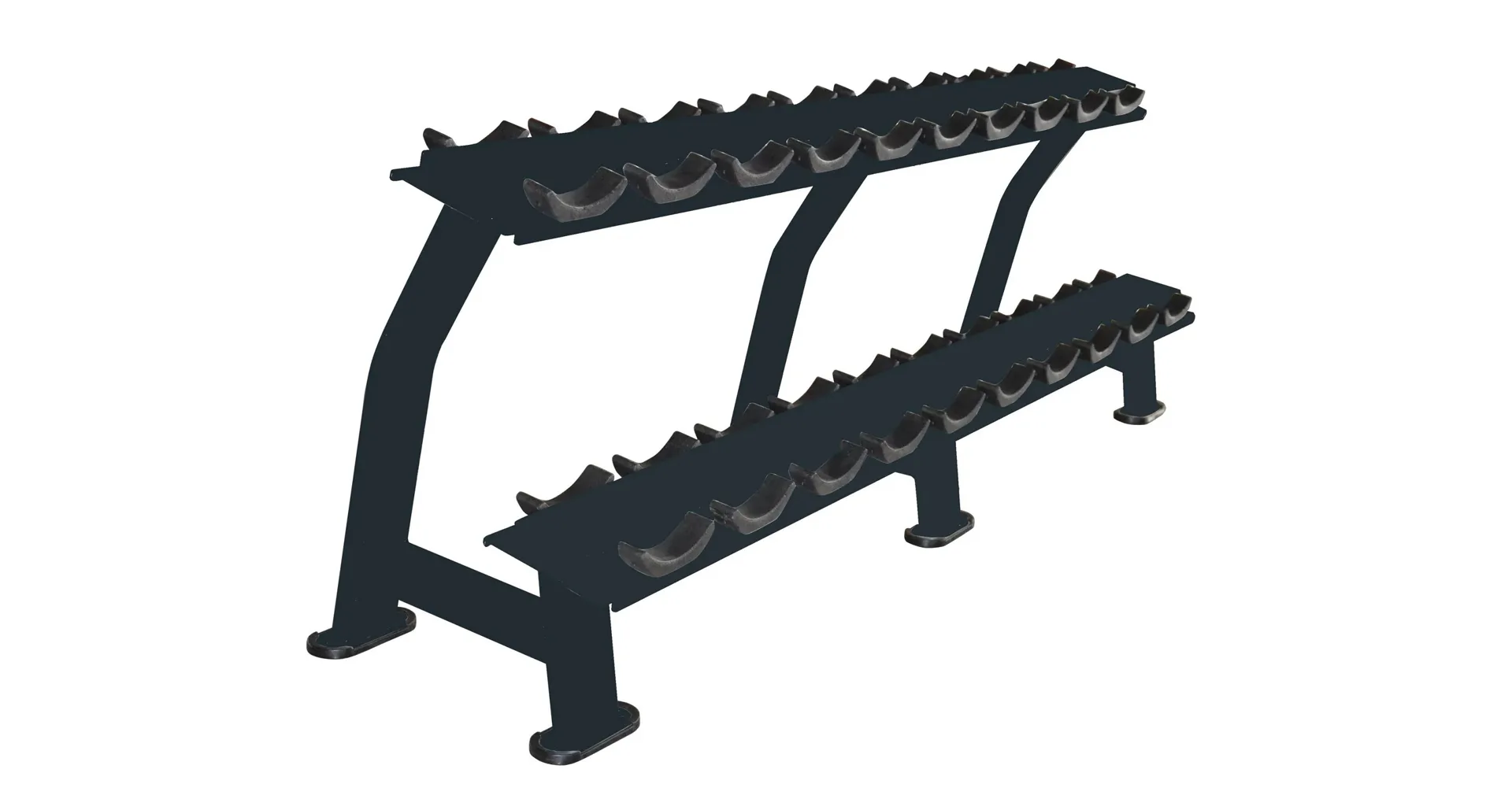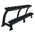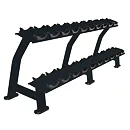 Dvojradový stojan na činky PRIMAL Matte Nero na činky 2,5 až 50 kg. Dvojradový stojan ponúka priestor pre 10 párov činiek. Najmenšie a najľahšie sú umiestnené hore a najťažšie a najväčšie v spodnej časti stojana.