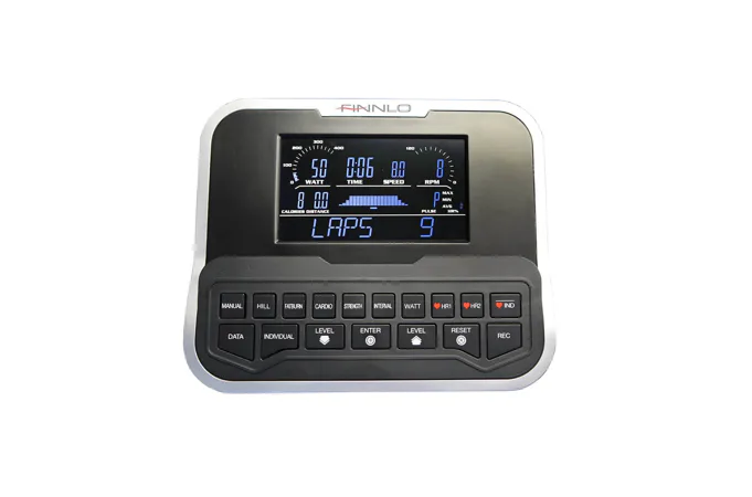 Ergometr Finnlo Varon XTR disponuje moderní indukční brzdou a 8 kg kalibrovaným setrvačníkem, což zaručuje zcela tichý, plynulý chod a spolu s jemným nastavením zátěže ve 41 stupních poskytuje maximální komfort při šlapání.
