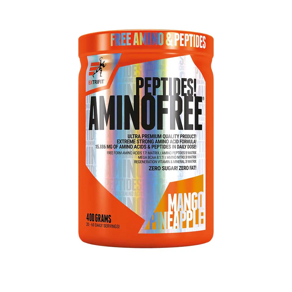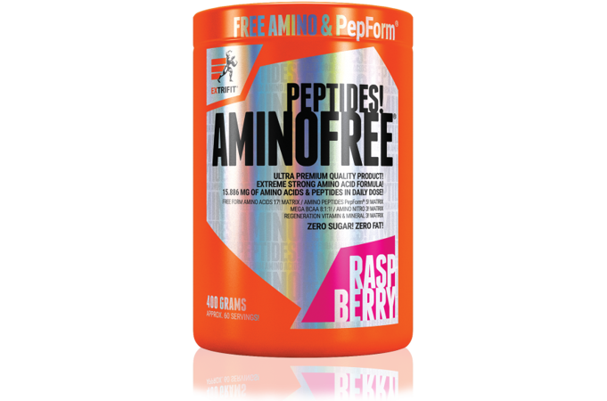 Extrifit nikdy nikoho nekopíruje a nikdy nevyrába len to, čo ostatní. Extrifit vyvíja a tvorí produkty zodpovedajúce najnovším trendom a poznatkom športovej výživy a AminoFree® PEPTIDES je úplným vrcholom v novom leveli supermoderných a superúčinných aminokyselinových a peptidových suplementov. AminoFree® Peptides je produkt obsahujúci extrémne silnú dávku voľných aminokyselín (free form) s patentovanými peptidmi PepForm®. V jedinej odmerke dodáte svojmu telu 5296 mg free form aminokyselín a peptidov. V dennej dávke (3 odmerky) plných 15 886 mg! Táto účinná zmes je obohatená o synergicky pôsobiaci vitamín B6 (pyridoxín) vo vysoko funkčnej vysokej dennej dávke 250% RHP a najdôležitejšie regeneračné minerály draslík a horčík v optimalizovanej dennej dávke 15% RHP.