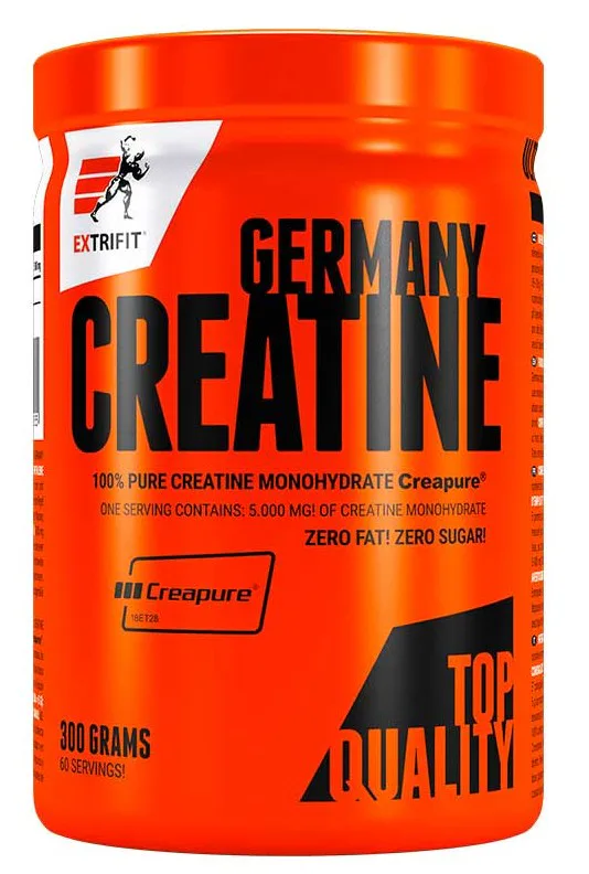 EXTRIFIT Creatine Germany je nemecký kreatín monohydrát s ochranou známkou zaisťujúcou 100% najčistejšiu formu kreatínu. Kreatín zvyšuje fyzickú výkonnosť pri intenzívnych po sebe idúcich krátkych intervaloch, ako sú kulturistické série či kondičné posilňovanie vo fitness centrách. Kreatín zároveň zvyšuje objem každej svalovej bunky a je jedným z najúčinnejších nástrojov na rýchle nabratie svalovej hmoty! Tento účinok dosiahnete s touto najčistejšou formou na trhu a zárukou nemeckej kvality už pri užívaní 5 g denne!