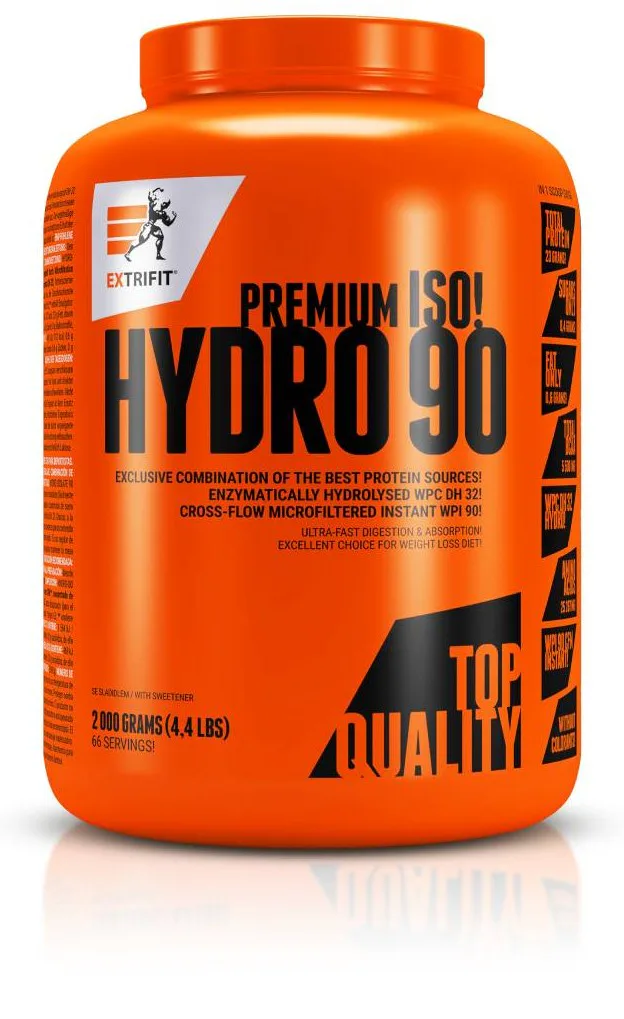 EXTRIFIT Hydro Isolate 90 je rýchlo vstrebateľný proteínový izolát bez cukru a bez tuku. Žiadne zahusťovadlá ani žiadne farbivá len hydrolyzovaný izolát 90 %.