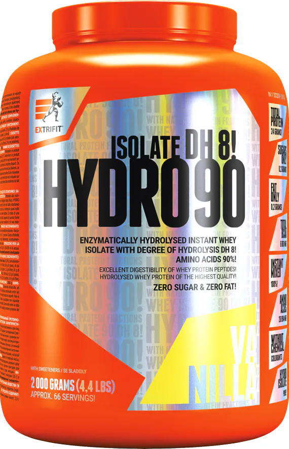 Instantný (ľahko rozpustný) enzymaticky hydrolyzovaný 90% srvátkový izolát so stupňom hydrolýzy DH 8, ktorý podľa príchuti obsahuje 90 až 94 g extrémne rýchlo využiteľných aminokyselín v každých 100 g produktu. Má takmer nulový obsah sacharidov a tuku, čo je výrazným rozdielom v porovnaní s hydrolyzátom srvátkového koncentrátu, je teda o to viac vhodný pri rysovaní av redukčných diétach. Hydro Isolate 90 je nekompromisný proteínový suplement určený pre tých najnáročnejších užívateľov.