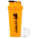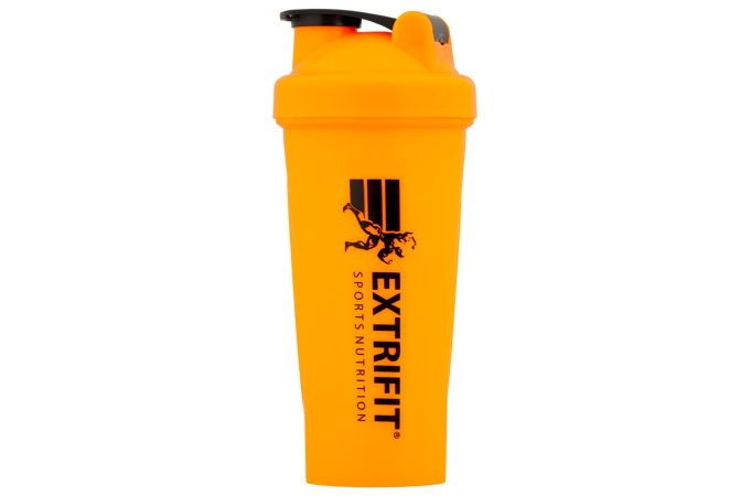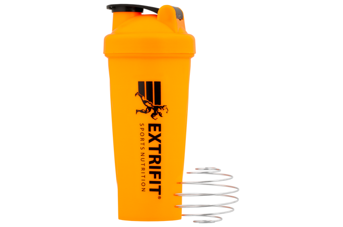 Šejker je oranžovej farby s objemom 600 ml, štíhly, smerom ku dnu sa zužuje. Uzáver šejkra je skrutkovací, malé viečko je zaklapávacie. Po stranách sú protišmykové tvarované časti, takže sa šejker dobre drží. Vzadu nájdete rysky v ml/oz na odmeranie a priehľad pre vizuálnu kontrolu náplne, vpredu je logo Extrifit. Šejker obsahuje pružinovú guľôčku na lepšie rozmiešanie nápoja. Obsah cez kvalitne vyriešené skrutkovanie nepreteká. Náplň šejkra je vidieť cez spriesvitnený bok s mernou stupnicou. Objem šejkra zobrazený na poslednej ryske je 600 ml.