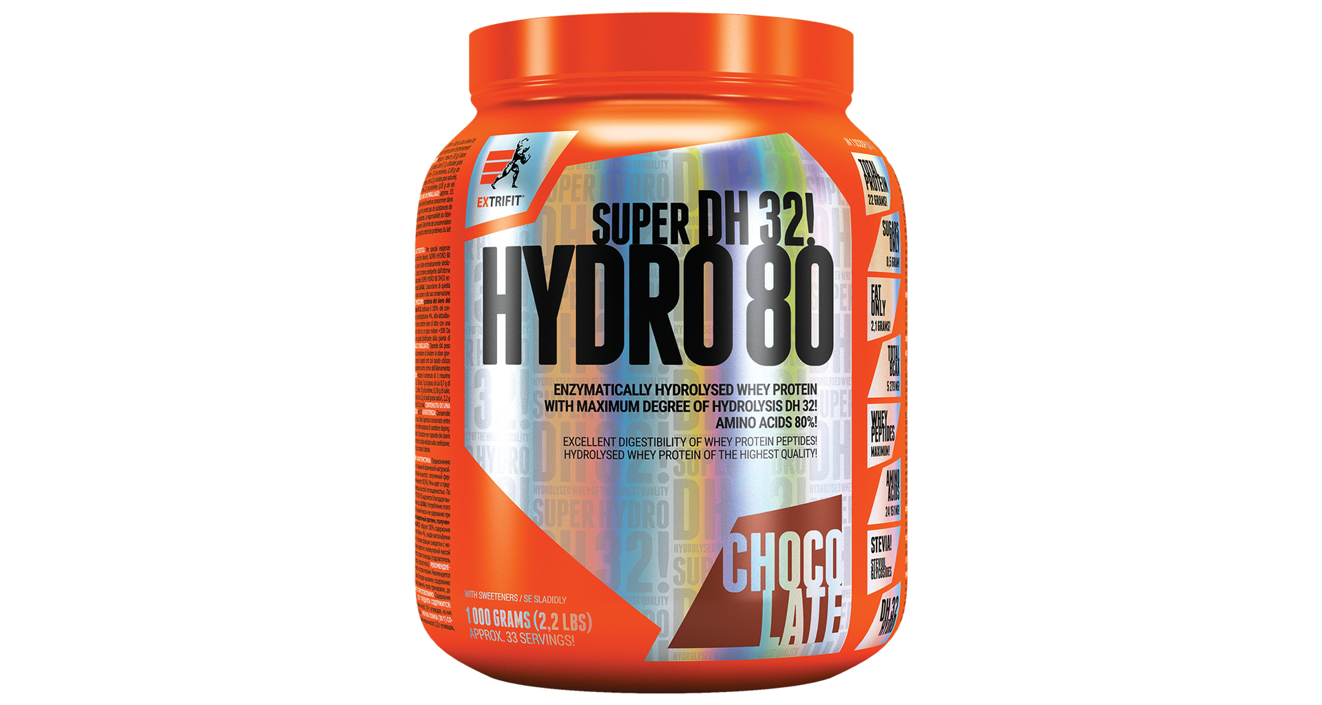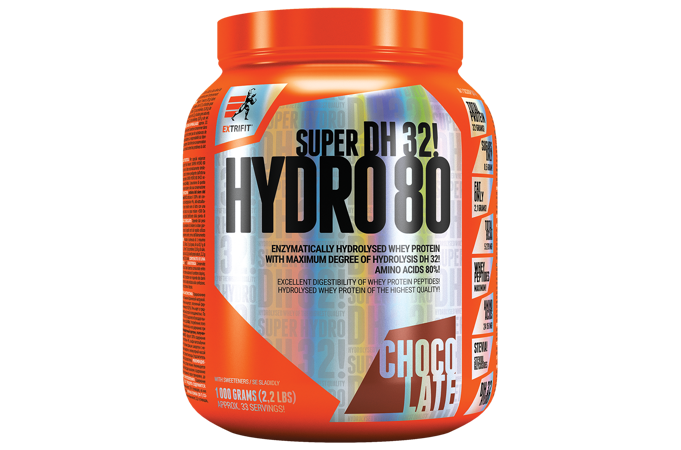 Super Hydro 80 DH32 je enzymaticky štiepený hydrolyzovaný srvátkový proteínový koncentrát s najvyšším možným stupňom hydrolýzy DH32 (obsahuje 80,5 % aminokyselín). V tomto hydrolyzovanom proteínu (DH32) je zachovaný najvyšší obsah cenných prirodzených bielkovinových frakcií. Produkt Super Hydro 80 DH32 obsahuje sladidlo z rastliny stévia. Enzymaticky hydrolyzovaný srvátkový proteín je tým najlepším zdrojom bielkovín, aký je v súčasnosti dostupný! Jedná sa o "predtrávené" bielkoviny s vynikajúcou stráviteľnosťou a rýchlu vstrebateľnosťou.