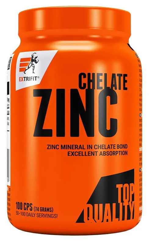 Zinc 100 Chelate obsahuje minerál zinok v chelátovej väzbe. Táto forma zinku vyniká nad inými formami špičkovou vstrebateľnosťou a dokonalou využiteľnosťou ľudským organizmom. Zdrojom zinku v tomto produkte je bisglycinát zinočnatý. Výborná vstrebateľnosť chelátovej väzby zinku poskytuje ďalšiu veľkú výhodu: pre zaistenie účinku nemusíte užívať také vysoké dávky zinku ako u jeho iných, lacných foriem! Dávka na 100 dní!