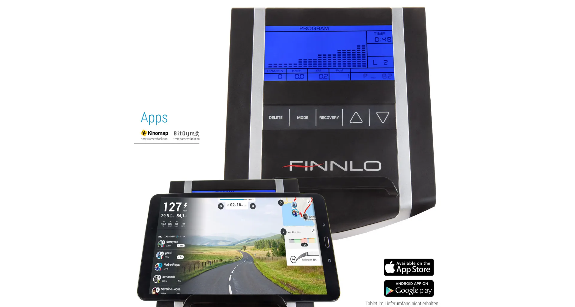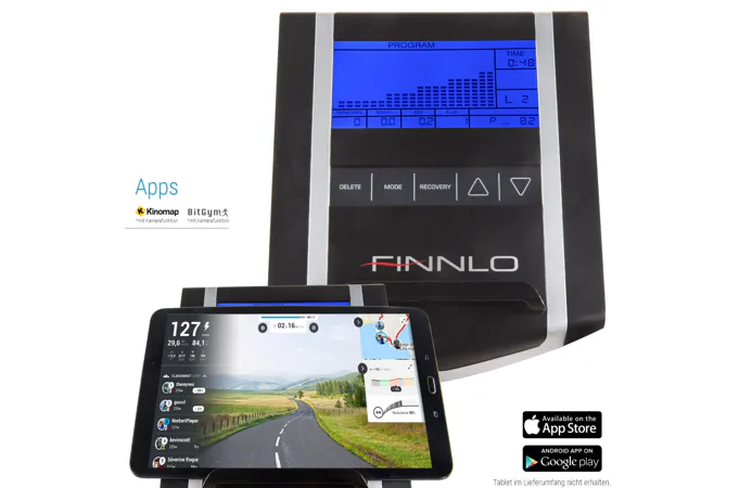 Finnlo Loxon III disponuje počítačem s LCD displejem a integrovaným držákem na tablet / smartphone.