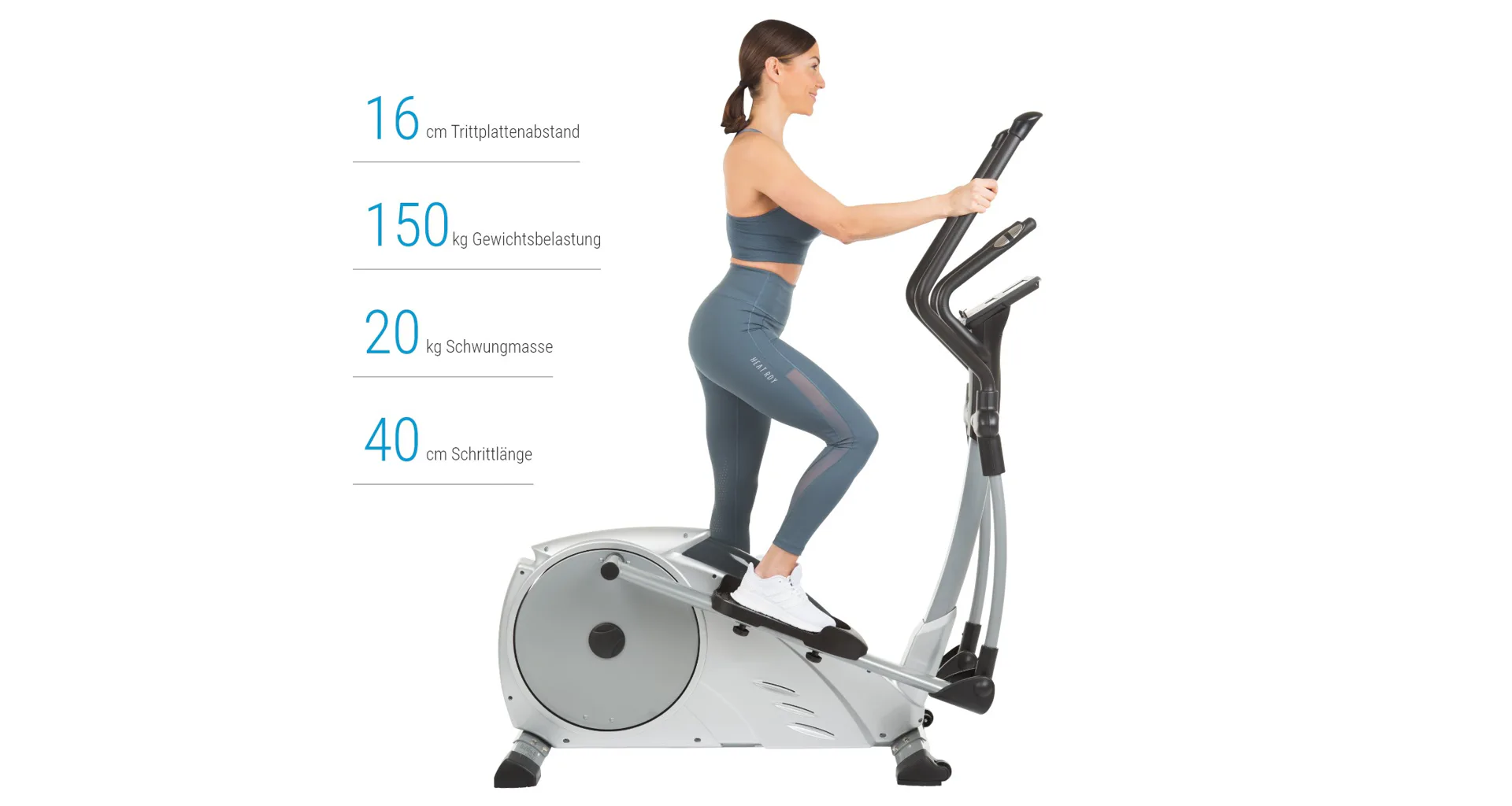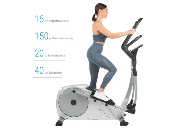 Minimální rozestup nášlapů 16 cm zajišťuje přirozený pohyb a délka kroku 40 cm zajišťuje bezproblémový pohyb drobnějším i vyšším postavám. Drážky pro nášlapy jsou nastavitelné ve třech úrovních a lze je přizpůsobit pro menší i vyšší postavy.