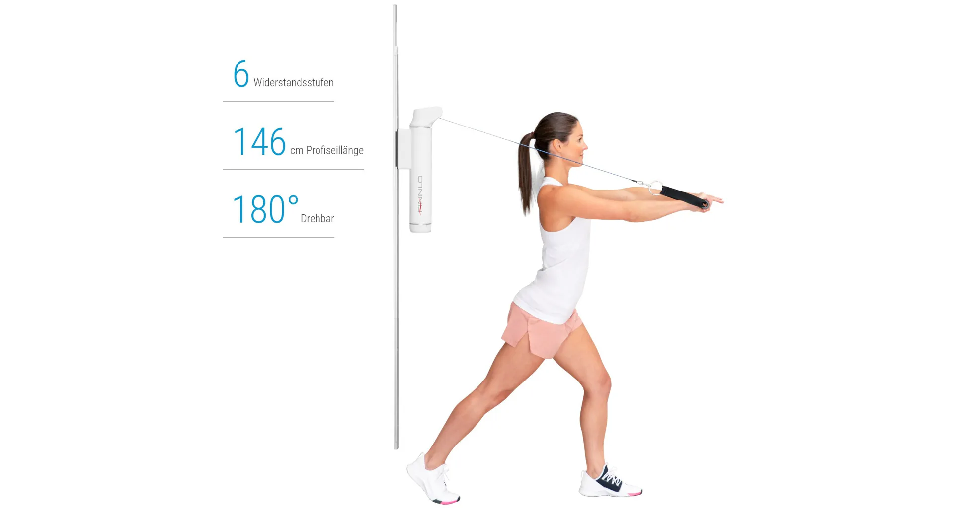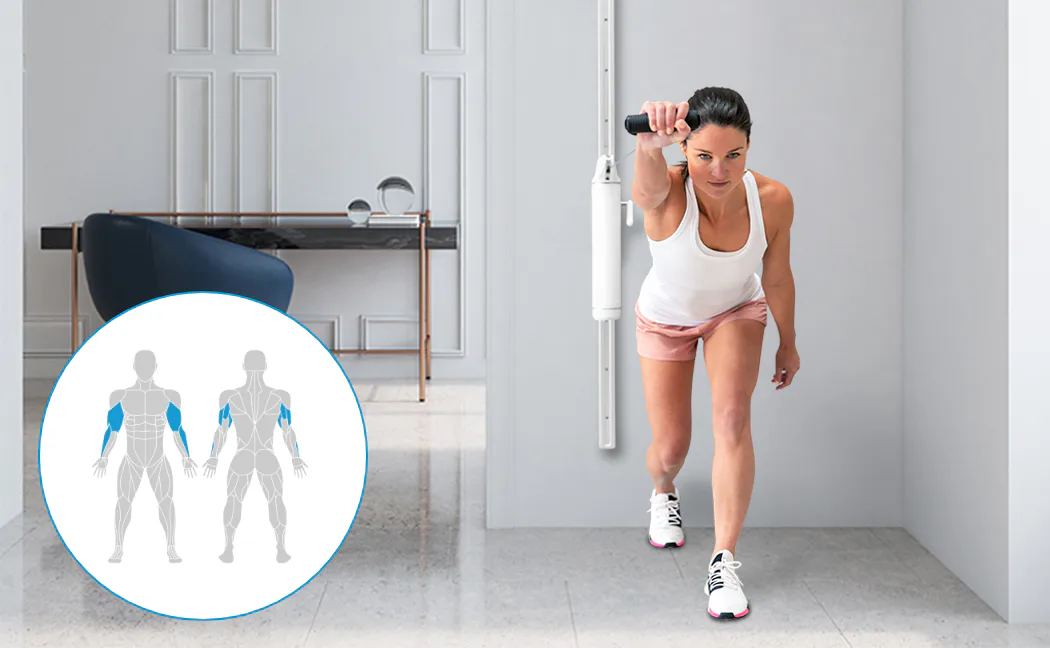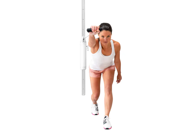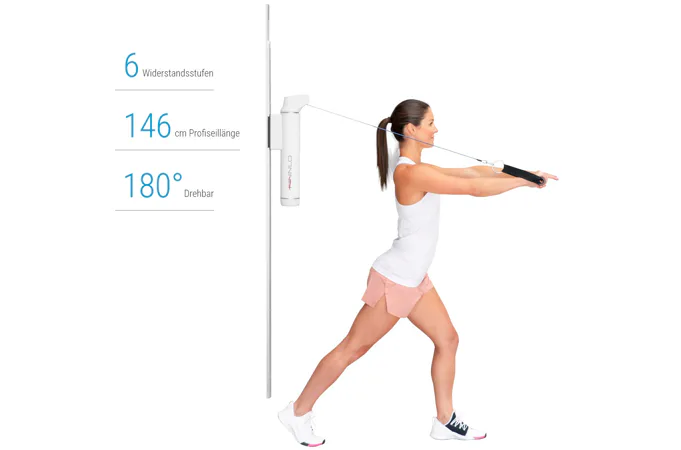 Stroj nabízí 6 úrovní odporu, flexibilní nastavení výšky, lano o délce 136 cm s možností otáčení o 180°, to vše zajistí komplexní trénink s minimálními nároky na prostor a bez ohledu na vaši momentální fyzickou kondici nebo případný handicap. Je to ideální cvičební pomůcka i pro vozíčkáře a osoby se sníženou hybností.