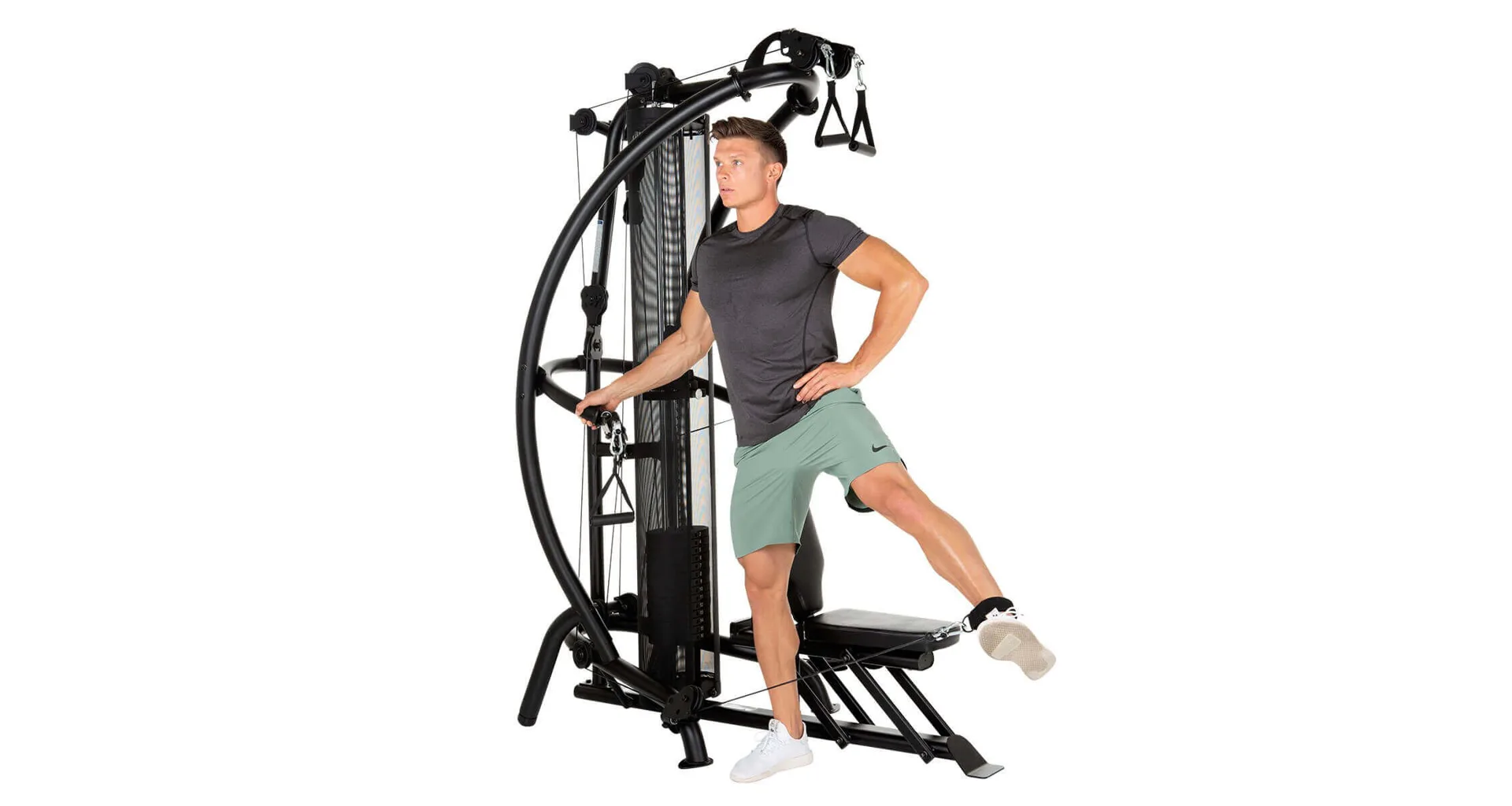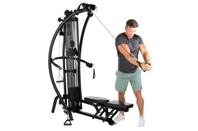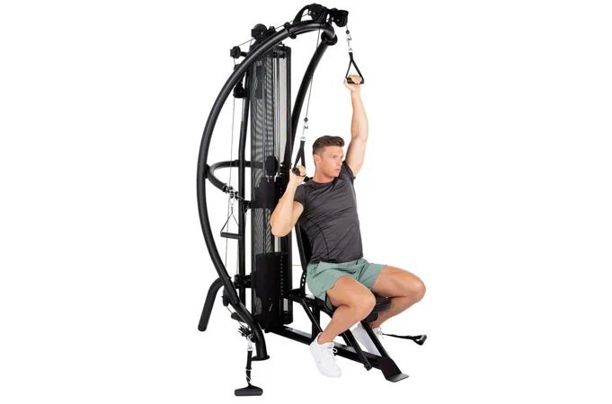 Model FINNLO MAXIMUM Multi-gym M1 zabírá poměrně málo prostoru a navíc nabízí ergonomicky dokonale plynulý systém kladek pro trénink více jak 50 cviků. Všechny kladky jsou plně samostatné a zásobních zátěže váží 75 kg.