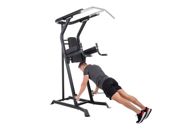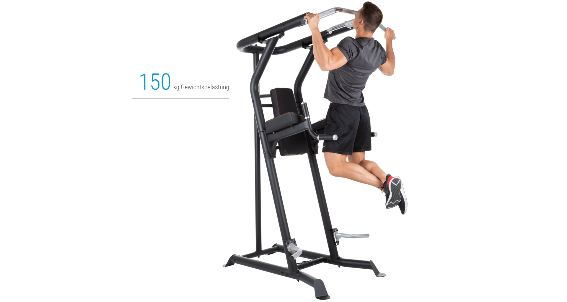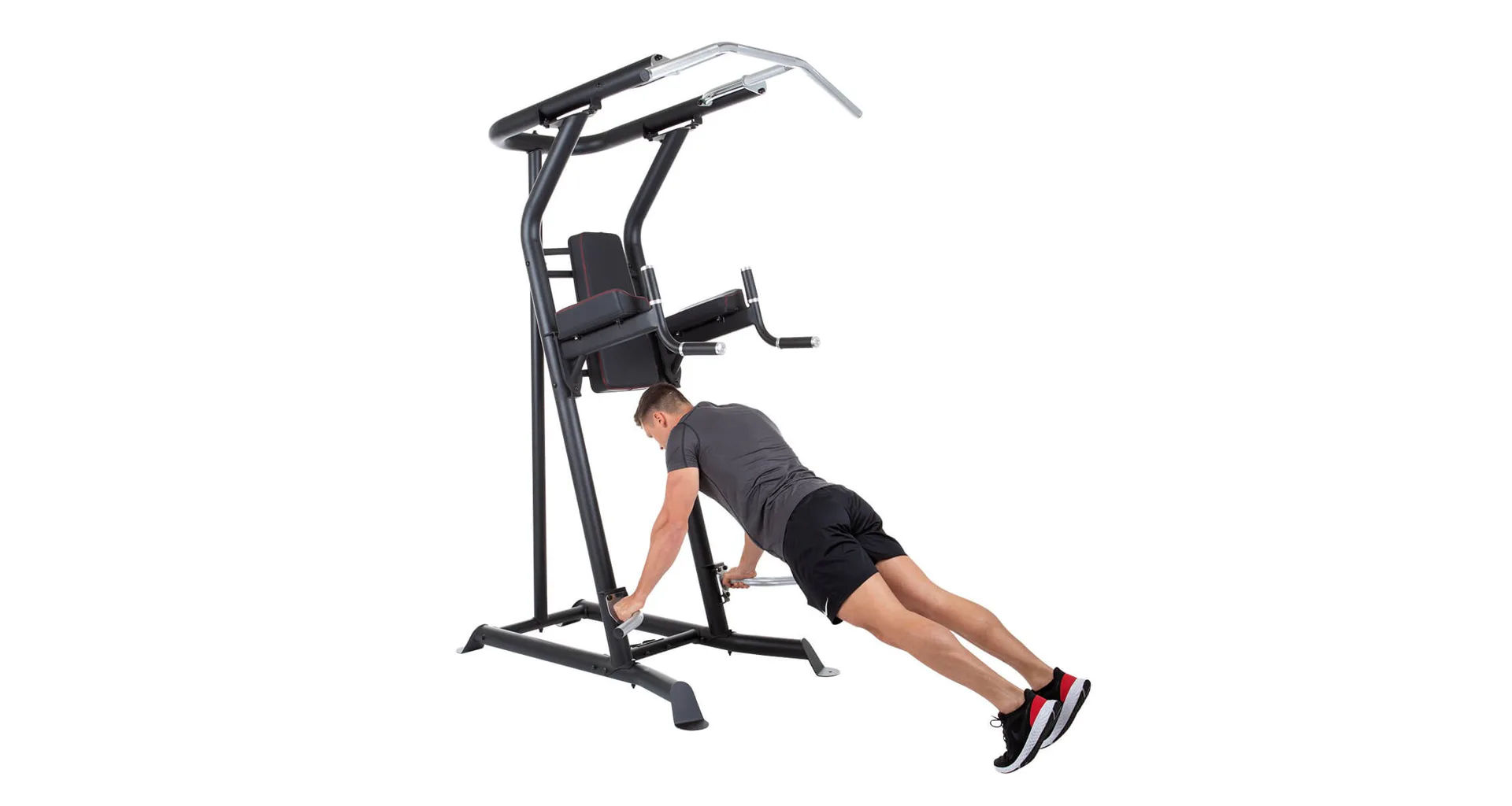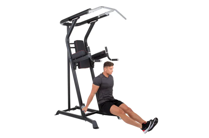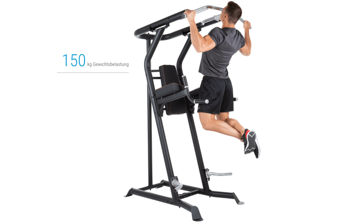 Multifunkčná konštrukcia Vertical Knee Raise je veľmi obľúbená pre svoju univerzálnosť. Táto konštrukcia ponúka 4 rôzne stanovištia. Vrchná časť obsahuje hrazdu so širokým aj úzkym úchopom, bradlá na prednožovanie a rukoväte na kľučky na bradlách. V spodnej časti sú potom integrované opierky na klasické kľučky v maximálnom rozsahu pohybu. Ergonomicky riešená konštrukcia vám umožní komplexné precvičenie chrbta, brušných svalov, svalstva paží a ramien, to všetko pohodlne av optimálnych polohách.