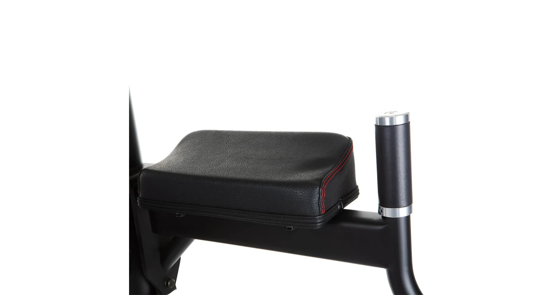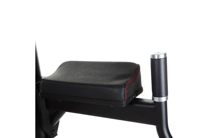 Dve podrúčky s prešitým čalúnením a ergonomicky naklonená podpera chrbta zaručujú optimálnu polohu pri cvičení. Všetky adaptéry sú opatrené pogumovanými rukoväťami. Hrazda a opierky na kľučky majú chrómovanú úpravu.