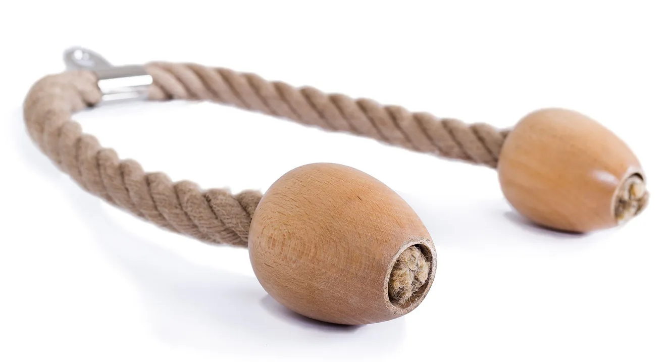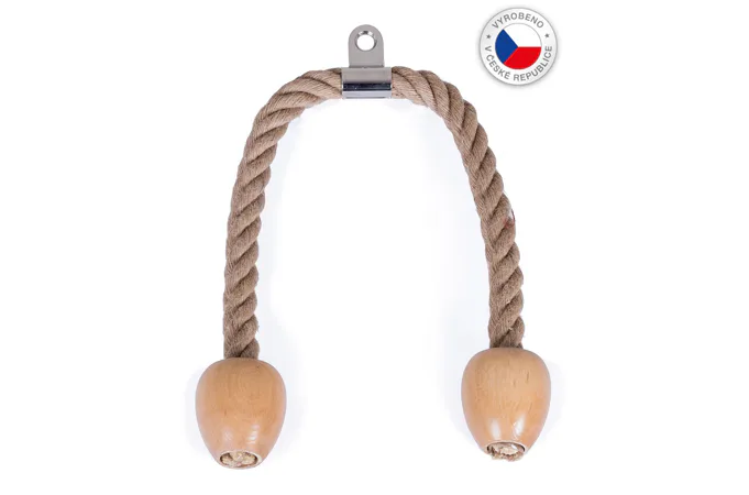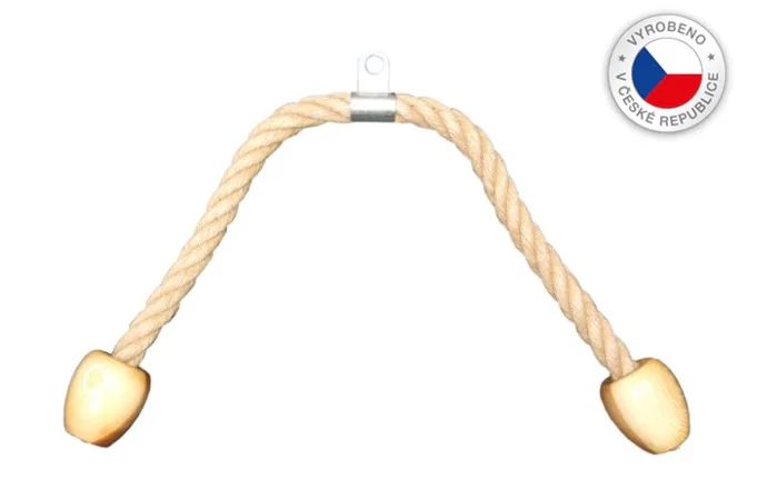 FITHAM lanový adaptér na triceps CS je pomôcka pre kladkové stroje, ktorá umožňuje metódu precvičenia tricepsov, bicepsov a brucha. Lano je na oboch koncoch opatrené veľkými drevenými koncovkami slúžiacimi ako dorazy pre ruky počas cvičenia. Lano je vyrobené z konopného materiálu s dlhou životnosťou. S týmto adaptérom je možné precvičovať brušné svaly, bicepsy, predné a bočné deltové svaly a mnoho ďalších svalových oblastí.