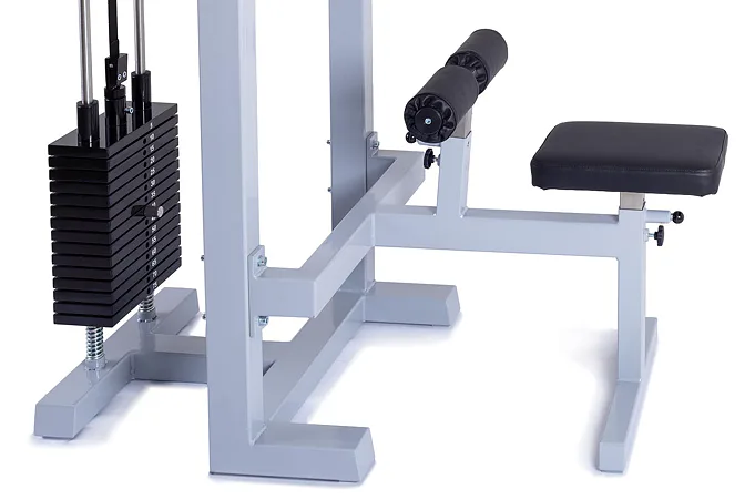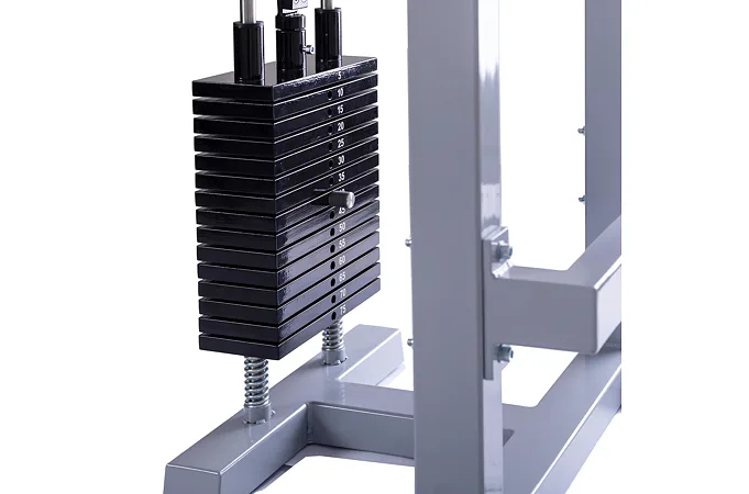 Stroj disponuje masívnou oceľovou konštrukciou, ktorá zaisťuje stabilitu a bezpečnosť pri tréningu. Samotné kladky sú osadené ložiskami pre plynulý chod lanka a odolajú aj extrémnej záťaži. Závažie je riešené pomocou oceľových tehličiek, vďaka sprevodovaniu umožňuje cvičenie s váhou až 75 kg. Nastavenie požadovanej váhy je jednoduché a rýchle.