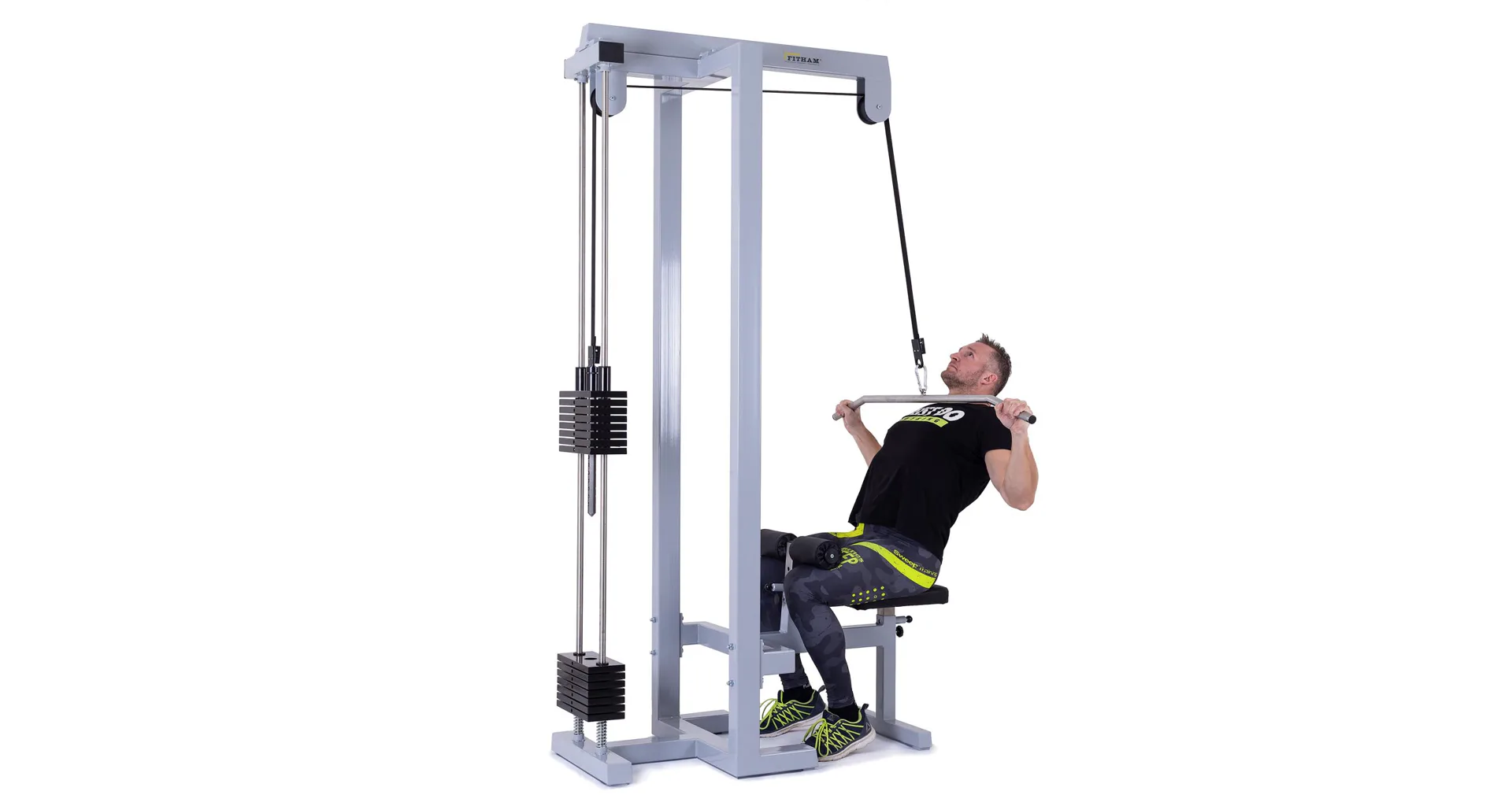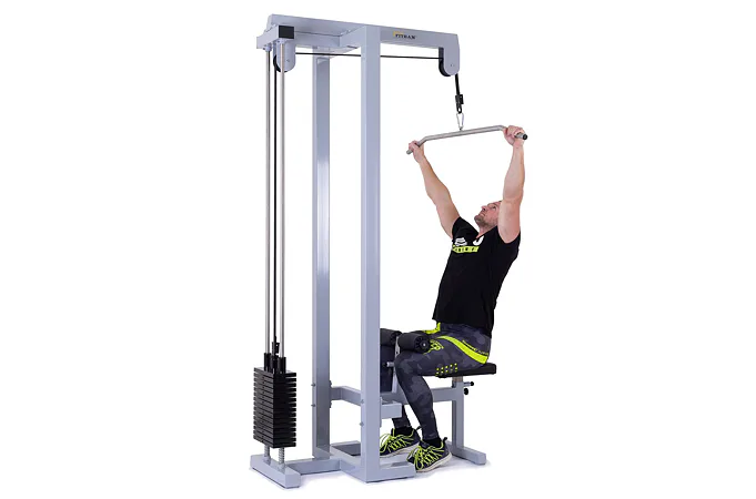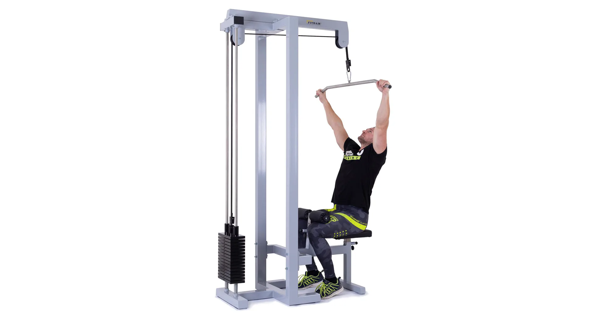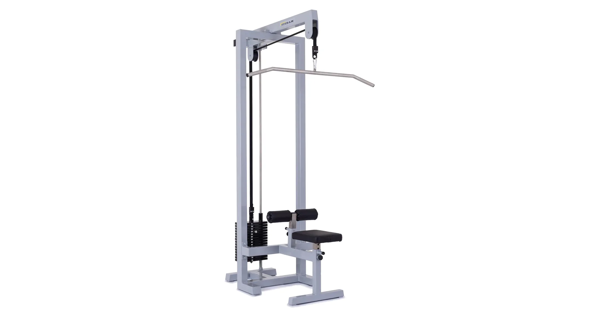 FITHAM Horná kladka patrí k najviac používaným špecializovaným strojom, jedná sa o klasickú hornú kladku na príťahy. Cvičenie sťahovania hornej kladky umožňuje posilňovanie hornej polovice tela. Je možné aktivovať a teda cvičiť široký zadný sval, ramená, triceps, brucho, prípadne ďalšie partie. Konštrukcia má pohodlné polstrované sedadlo a polohovateľné kolenné valce na zapretie nôh.