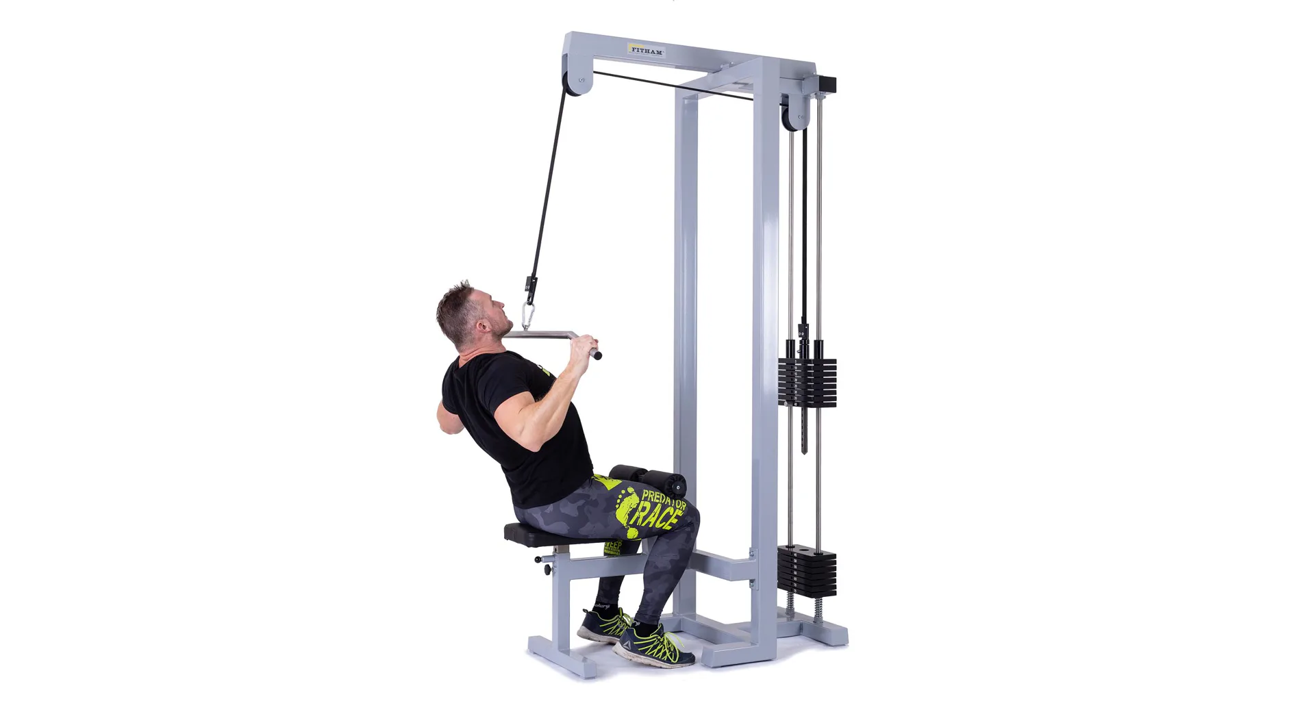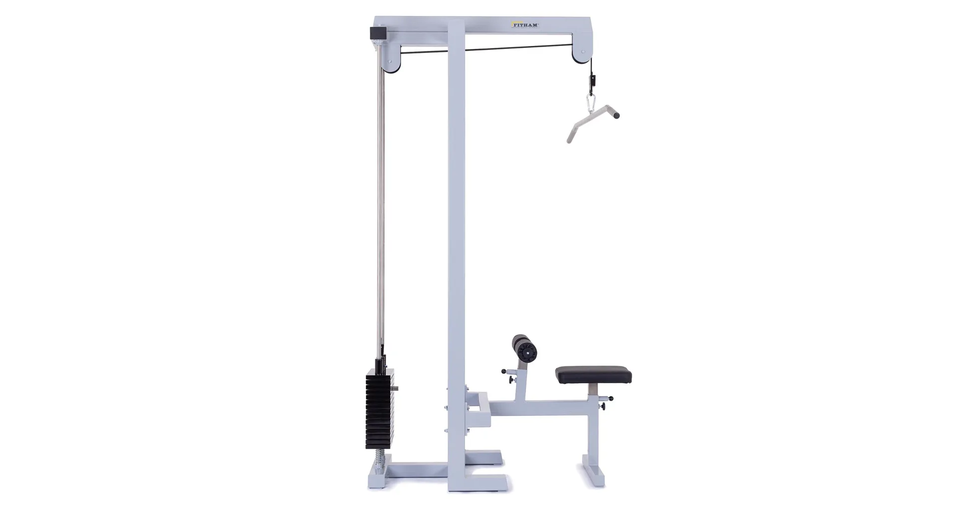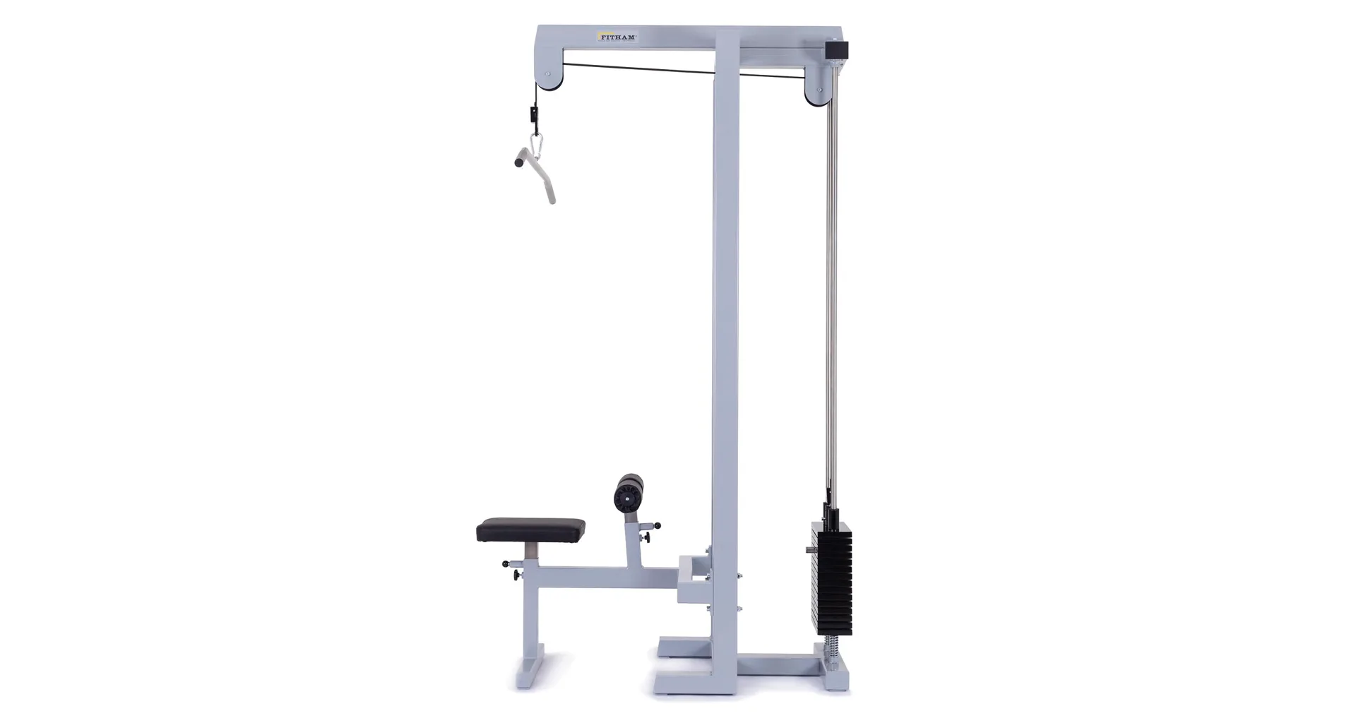 FITHAM Horná kladka patrí k najviac používaným špecializovaným strojom, jedná sa o klasickú hornú kladku na príťahy. Cvičenie sťahovania hornej kladky umožňuje posilňovanie hornej polovice tela. Je možné aktivovať a teda cvičiť široký zadný sval, ramená, triceps, brucho, prípadne ďalšie partie. Konštrukcia má pohodlné polstrované sedadlo a polohovateľné kolenné valce na zapretie nôh.
