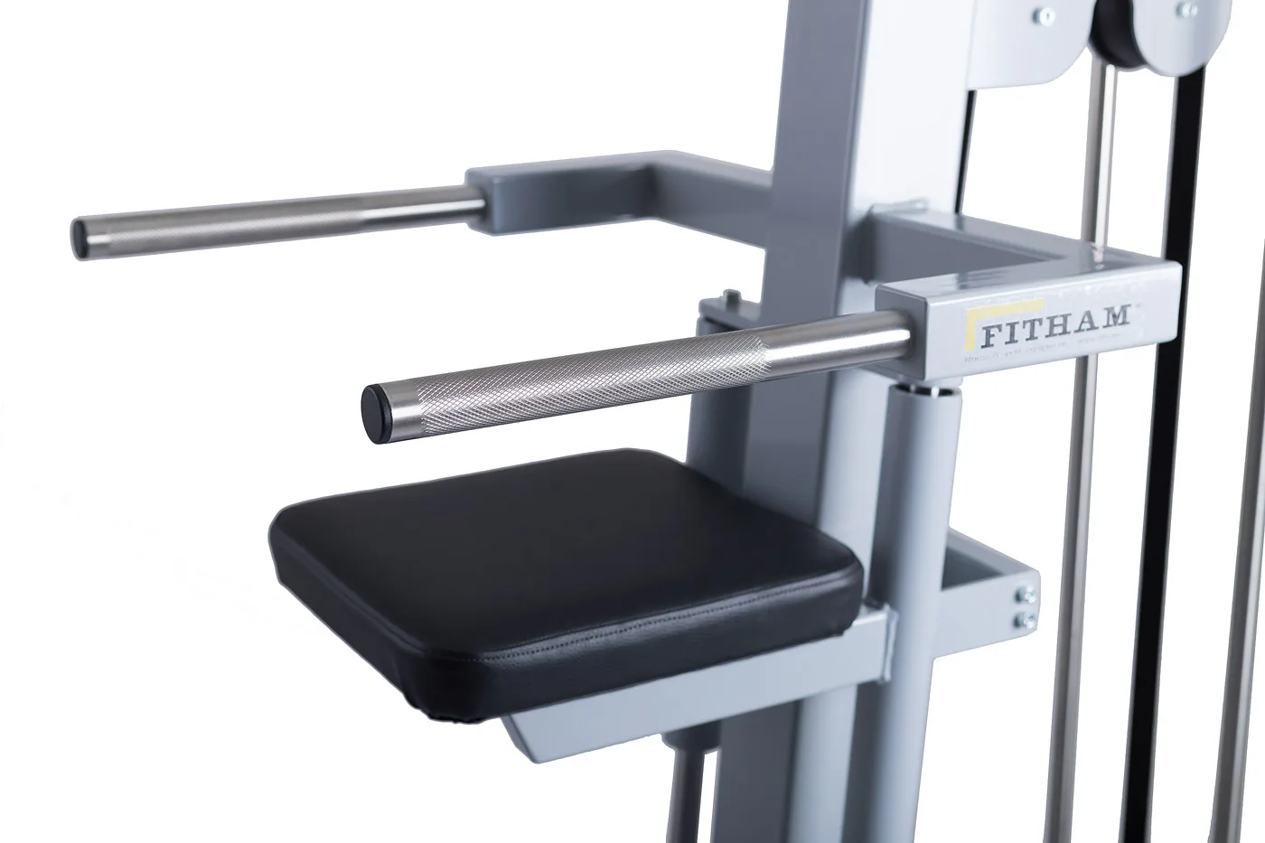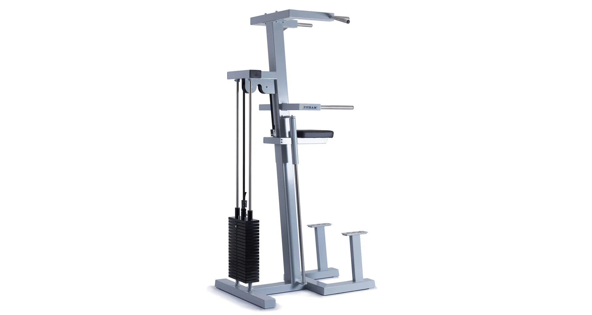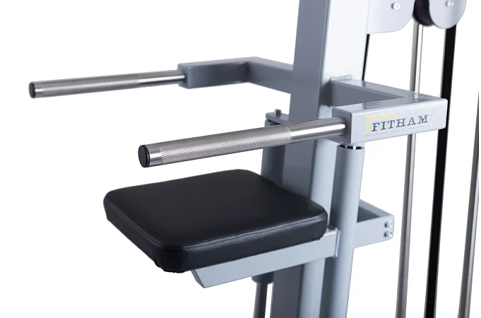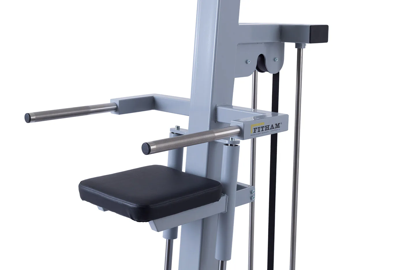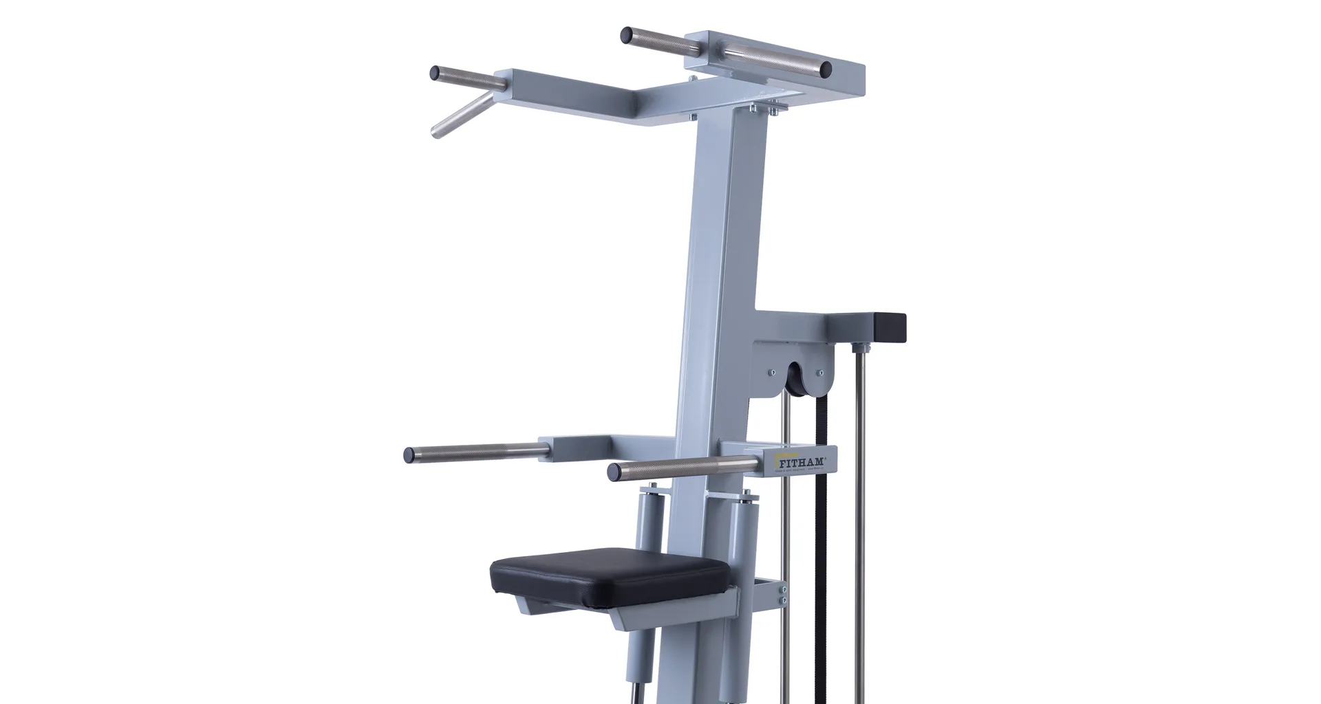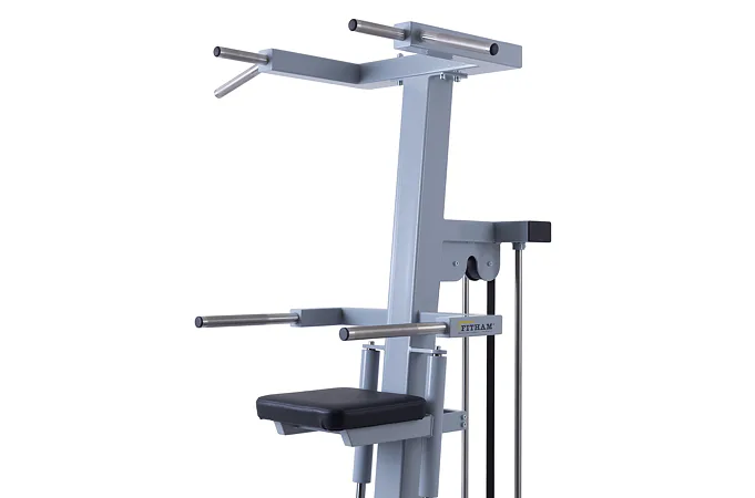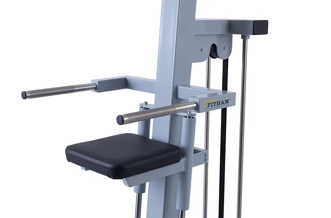Posilňovací stroj FITHAM Hrazda a bradlá s dopomocou je jednoúčelový posilňovací stroj určený pre bezpečné a striktné precvičenie zhybov na hrazde a kliky na bradlách. Ide o dva základné a veľmi komplexné cviky vďaka ktorým precvičíte väčšinu svalových skupín hornej časti tela.