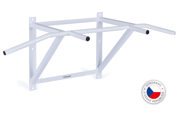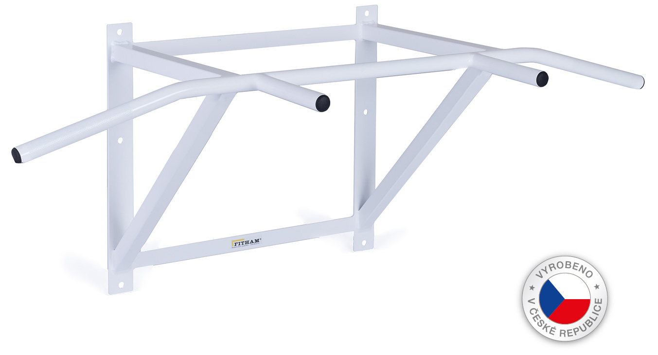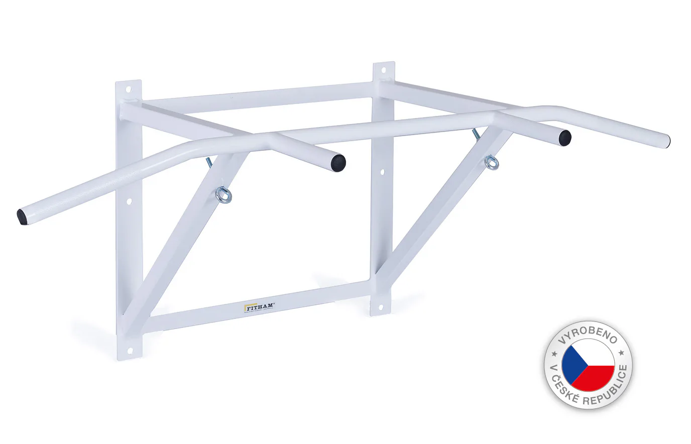 Nástenná hrazda FITHAM na zvislú stenu, je kvalitný český výrobok z hrubostenných oceľových profilov. Samotná úchopová tyč je v miestach úchopov rádlovaná, inak je hrazda určená na domáce či ľahko komerčné použitie. Hrazda je celolakovaná kvalitným komaxitovým lakom v bielej farbe.