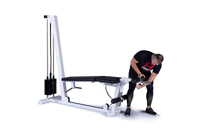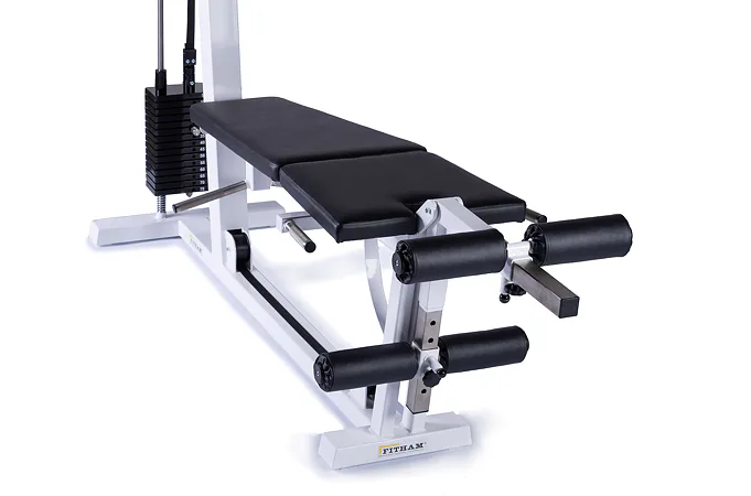 Konštrukcia má pohodlnú polstrovanú lavičku s dvoma penovými valcami na zakopávanie a predkopávanie. Chrbtová opierka je možné položiť do úplne vodorovnej pozície pre komfortné cvičenie pri zakopávaní. Závažie je riešené pomocou oceľových tehličiek, vďaka sprevodovaniu umožňuje cvičenie s váhou až 75 kg. Nastavenie požadovanej váhy je jednoduché a rýchle.