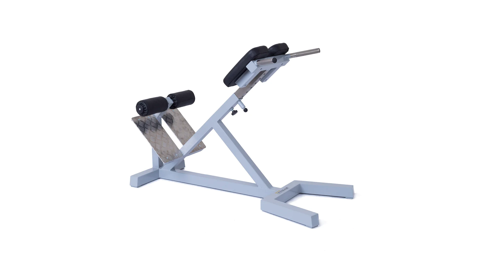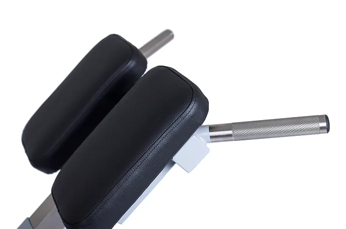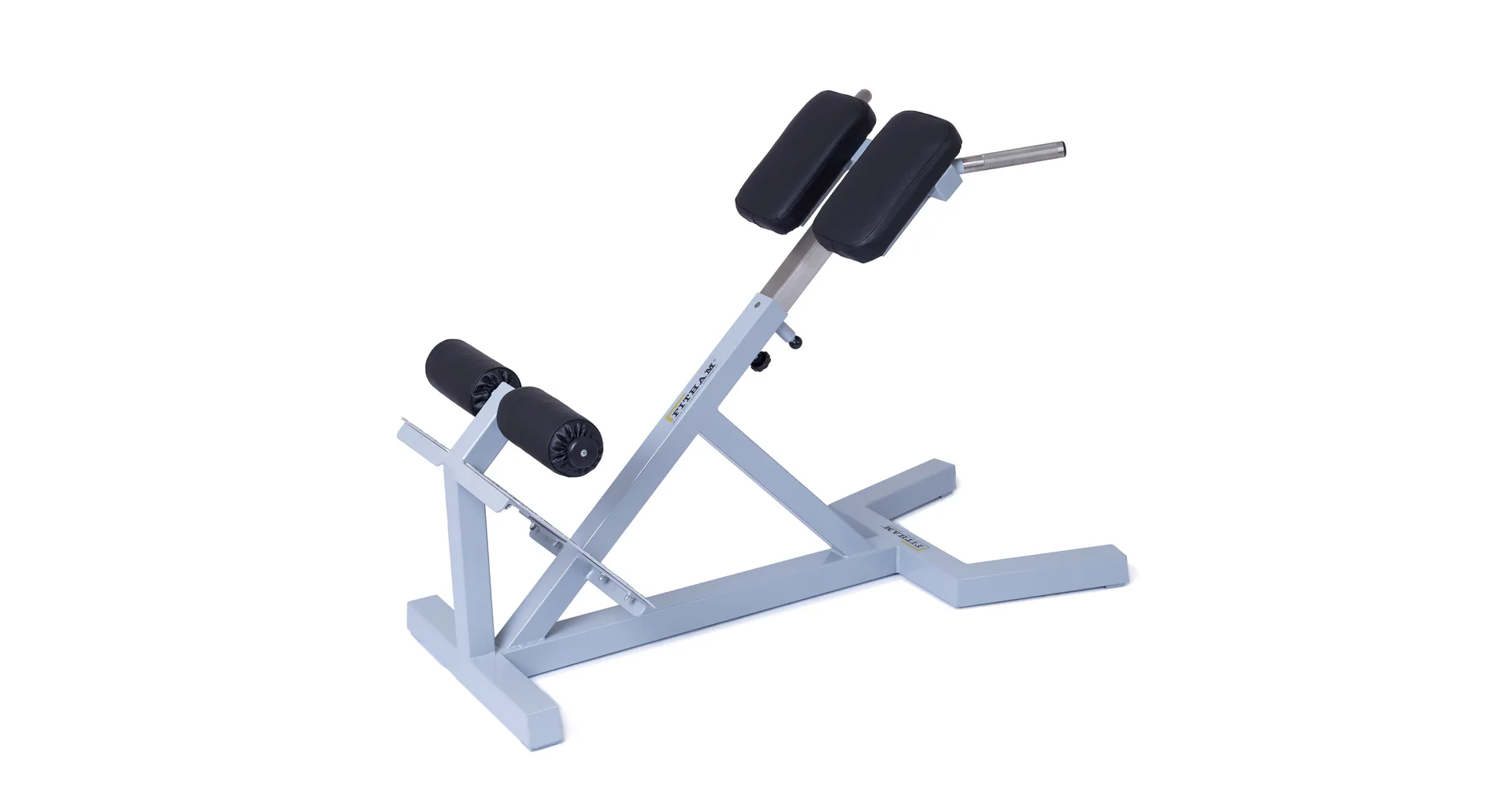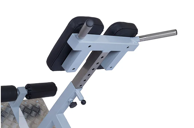 Profesionálna FITHAM lavica na vzpriamovače chrbtice HYPEREXTENZE má zafixovanú pozíciu a nemenný sklon 45 stupňov, iba polstrovaná opierka sa dá vysunúť (nastaviteľná voči výške cvičenca). Profesionálne čalúnenie, šírka a rozmery opierok zodpovedajú profesionálnemu štandardu.