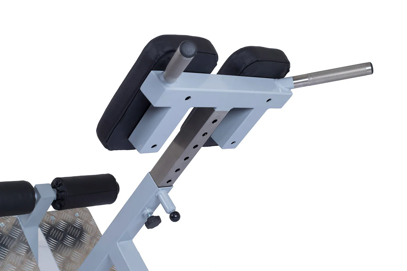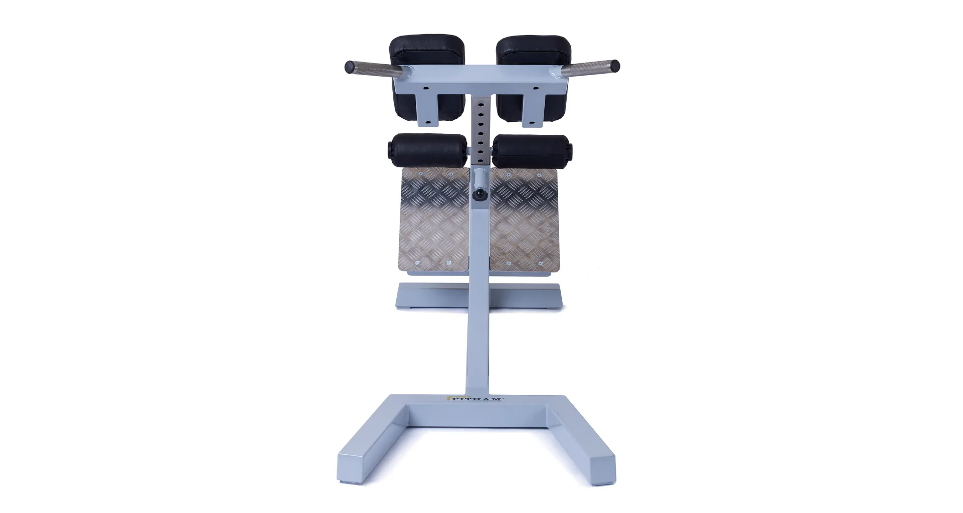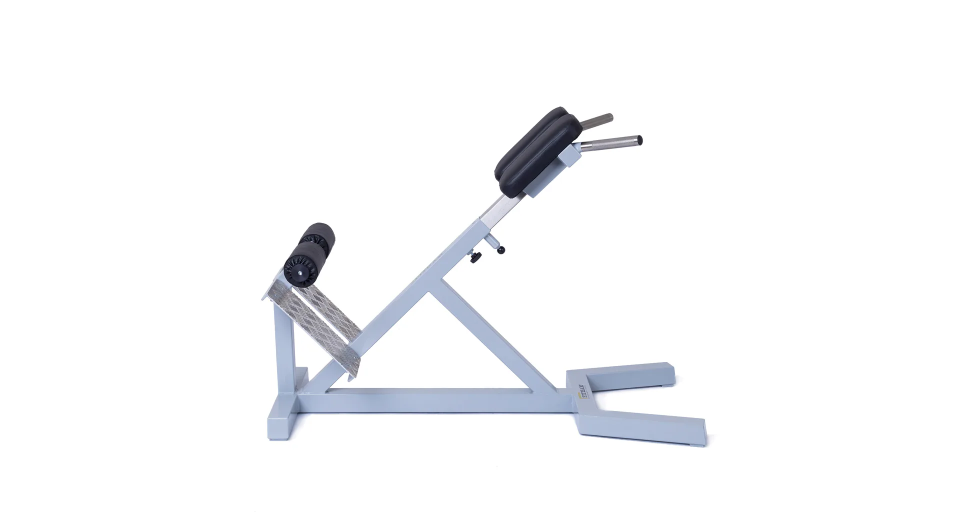 Profesionálna FITHAM lavica na vzpriamovače chrbtice HYPEREXTENZE má zafixovanú pozíciu a nemenný sklon 45 stupňov, iba polstrovaná opierka sa dá vysunúť (nastaviteľná voči výške cvičenca). Profesionálne čalúnenie, šírka a rozmery opierok zodpovedajú profesionálnemu štandardu.