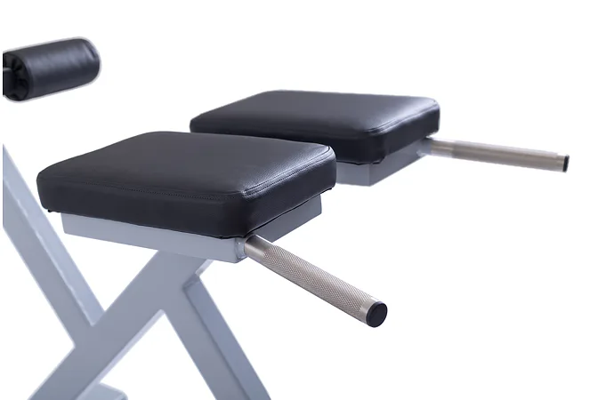 Lavica FITHAM Hyperextenzia patrí k špecializovaným laviciam, určené pre fitness centrá aj náročné domáce použitie, zamerané na konkrétnu partiu. V tomto prípade sa jedná o izolovaný cvik na vzpriamovače chrbtice, kedy sa môžete sústrediť na plné a kvalitné prevedenie cviku a svoje vzpriamovače úplne maximálne pretrénovať. Čiastočne zaberajú aj hamstringy a sedacie svaly. Lavica na vzpriamovače chrbtice FITHAM HYPEREXTENZE má zafixovanú pozíciu a nemenný sklon, iba penové valce je možné nastaviť do 3 polôh. Profesionálne čalúnenie, šírka a rozmery opierok zodpovedajú profesionálnemu štandardu.