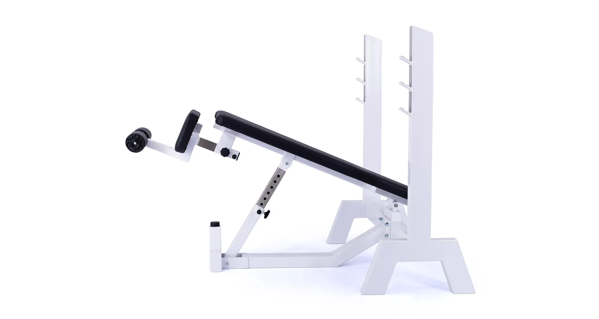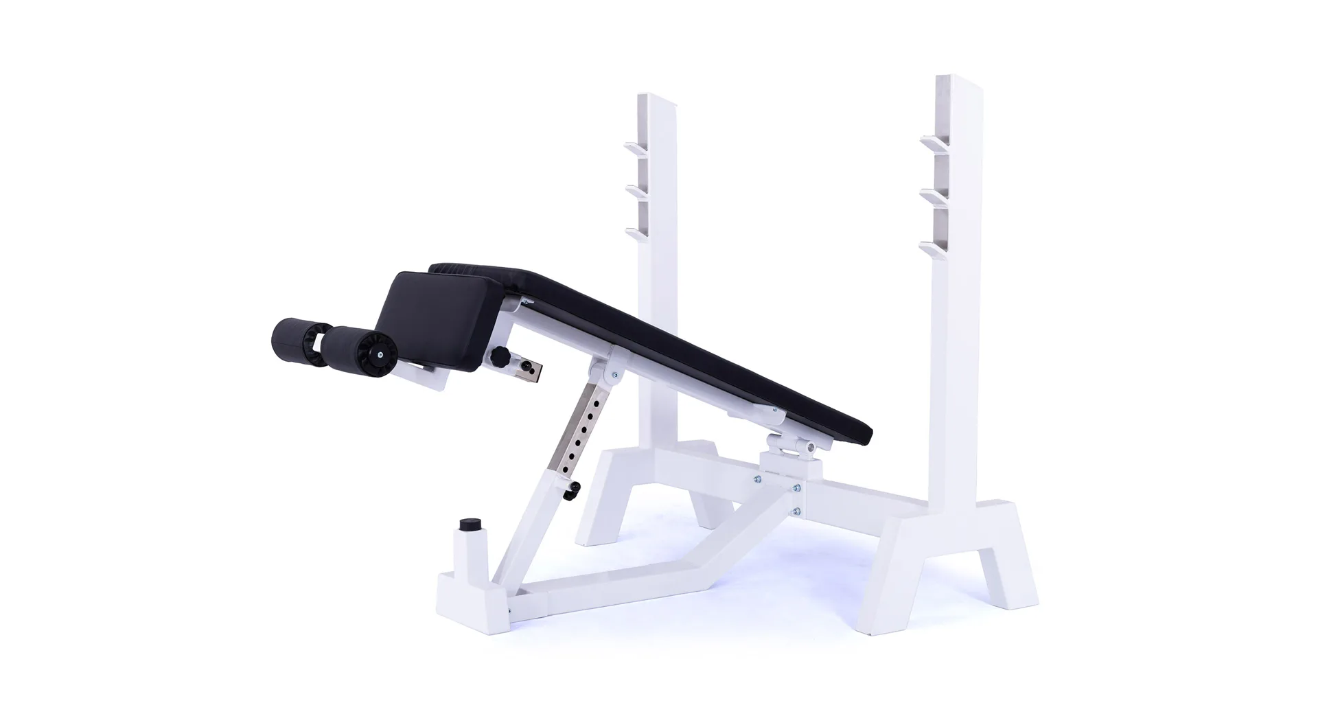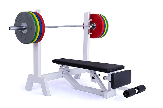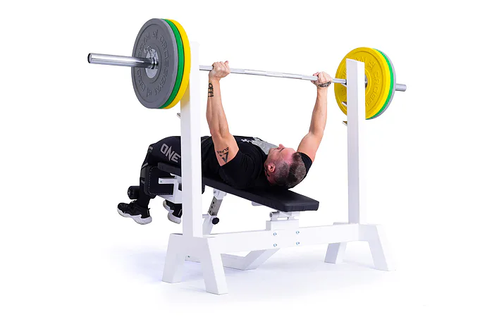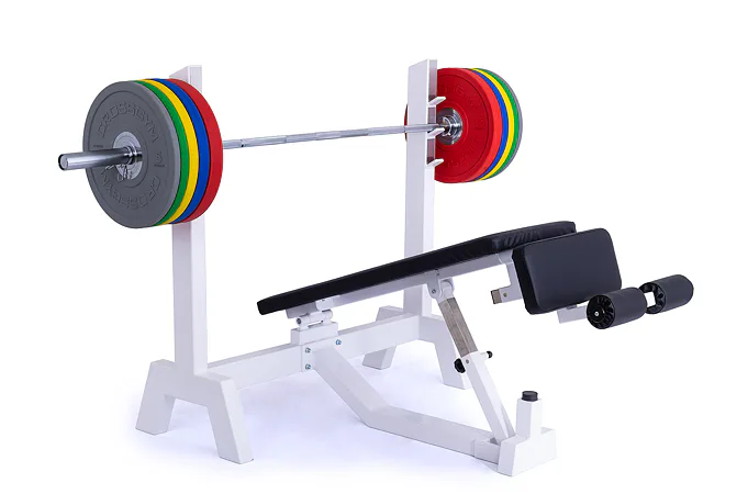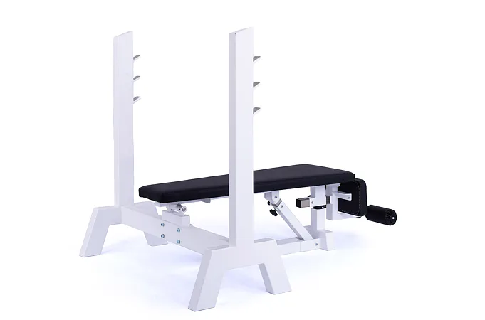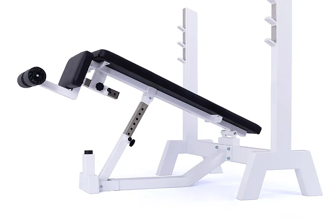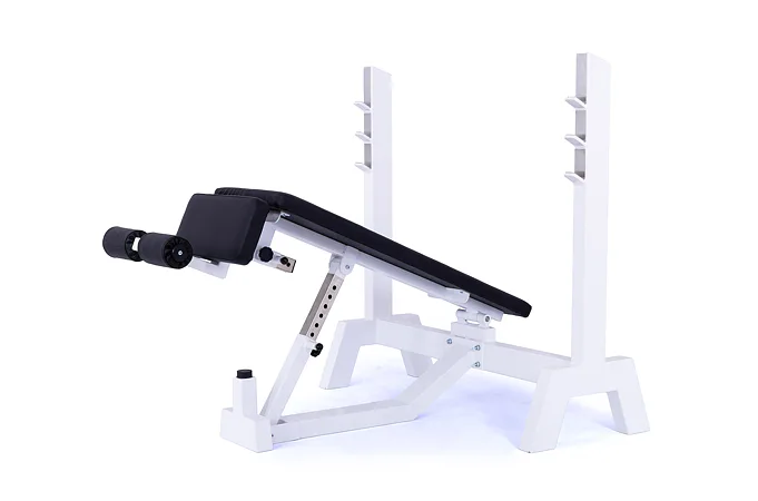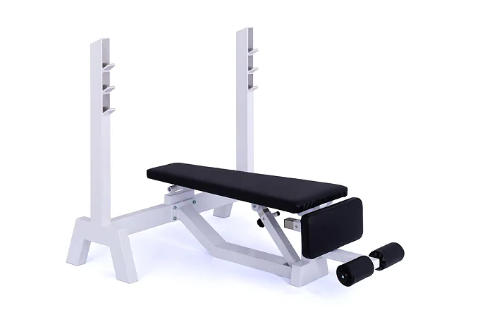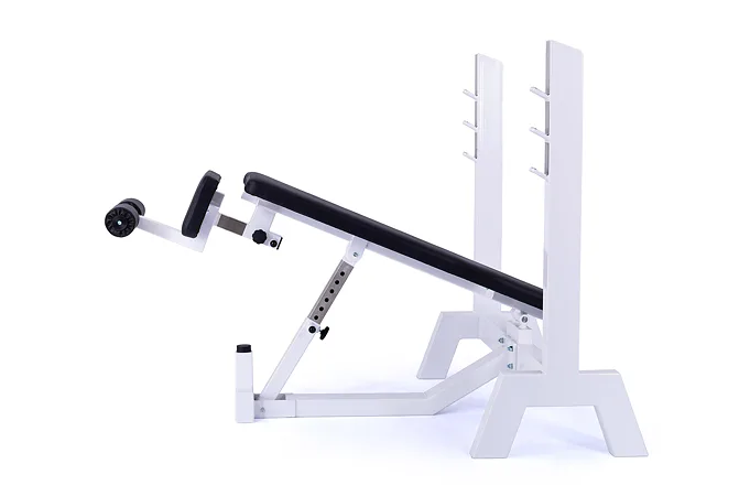 Lavica je vybavená stojanom s tromi polohami na obojručnú činku (podľa výšky cvičenca). Čalúnenú lavicu je možné zdvihnúť až do sklonu -45 ° (nohy sú vyššie ako hlava), pre zafixovanie nôh je lavica vybavená penovými valcami. Profesionálne čalúnenie, šírka a rozmery opierok zodpovedajú profesionálnemu štandardu.