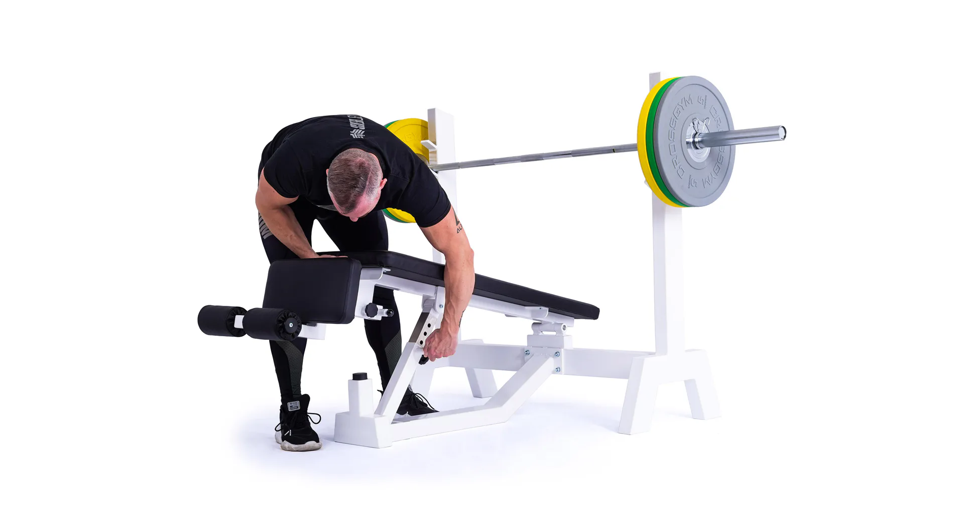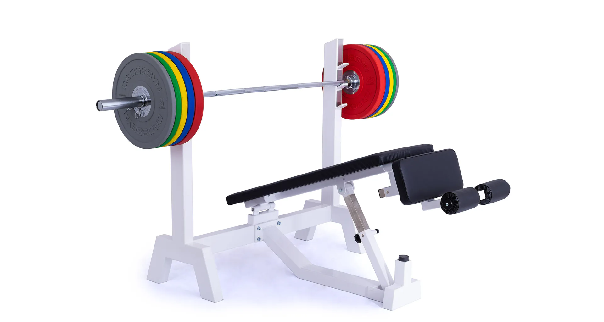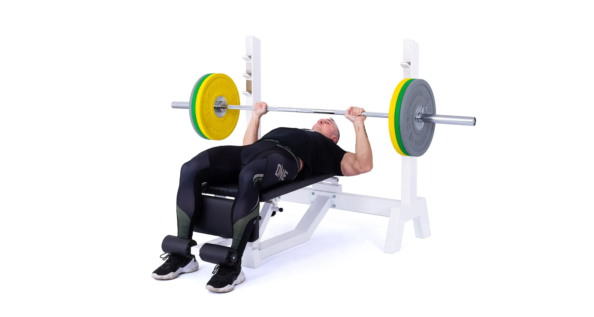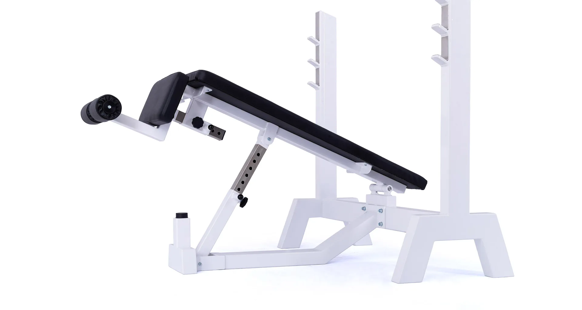 Lavica je vybavená stojanom s tromi polohami na obojručnú činku (podľa výšky cvičenca). Čalúnenú lavicu je možné zdvihnúť až do sklonu -45 ° (nohy sú vyššie ako hlava), pre zafixovanie nôh je lavica vybavená penovými valcami. Profesionálne čalúnenie, šírka a rozmery opierok zodpovedajú profesionálnemu štandardu.