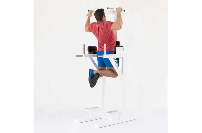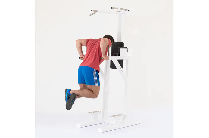 FITHAM Stojanová hrazda s bradlami a prednožovaním patrí medzi univerzálne konštrukcie, kde môžete kvalitne pretrénovať hornú polovicu tela. Jedná sa o masívnu konštrukciu určenú pre profesionálne fitness centrá, klubové posilňovne, či náročnejších súkromných zákazníkov požadujúcich profesionálny stroj. Konštrukcia umožňuje protrénovať brušných svalov pomocou prednožovania a tricepsov/prsných svalov vďaka dipom (bradlá) a chrbtové svaly vďaka príťahom na hrazde.