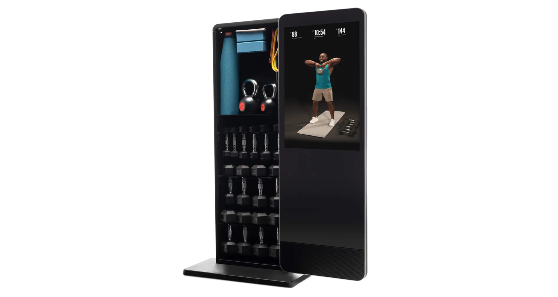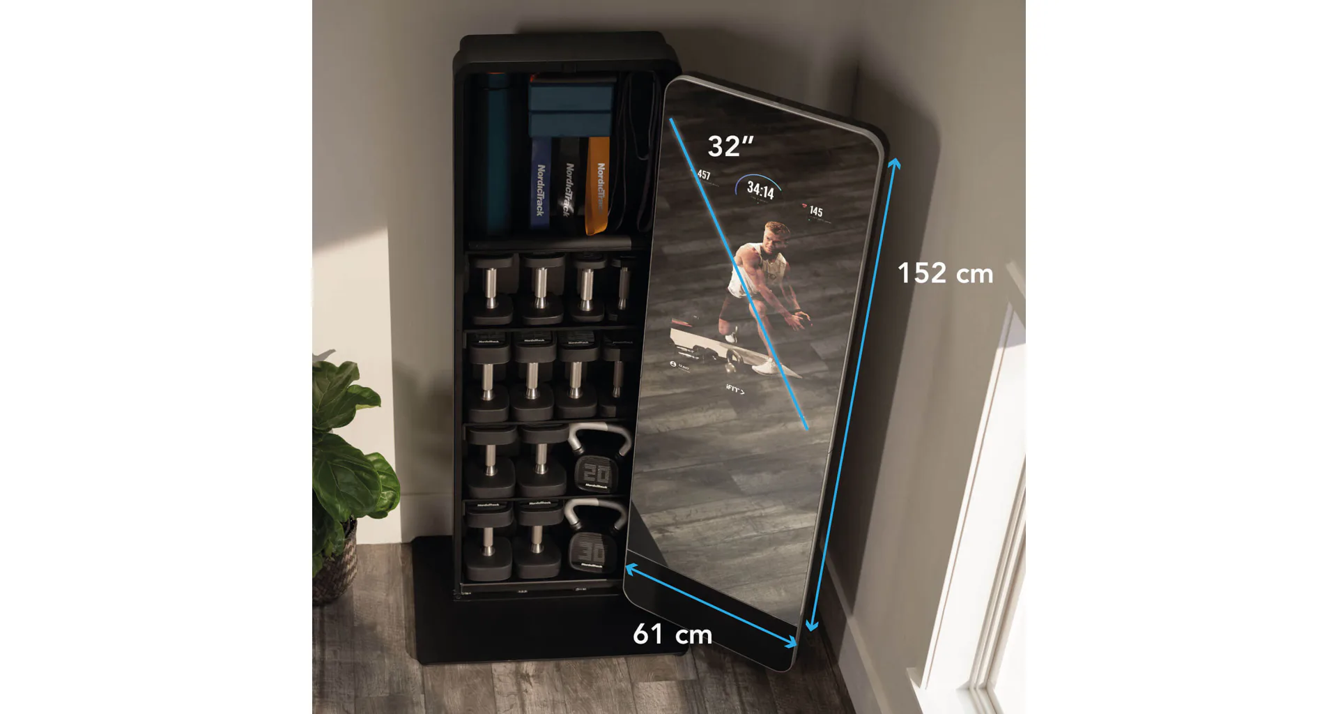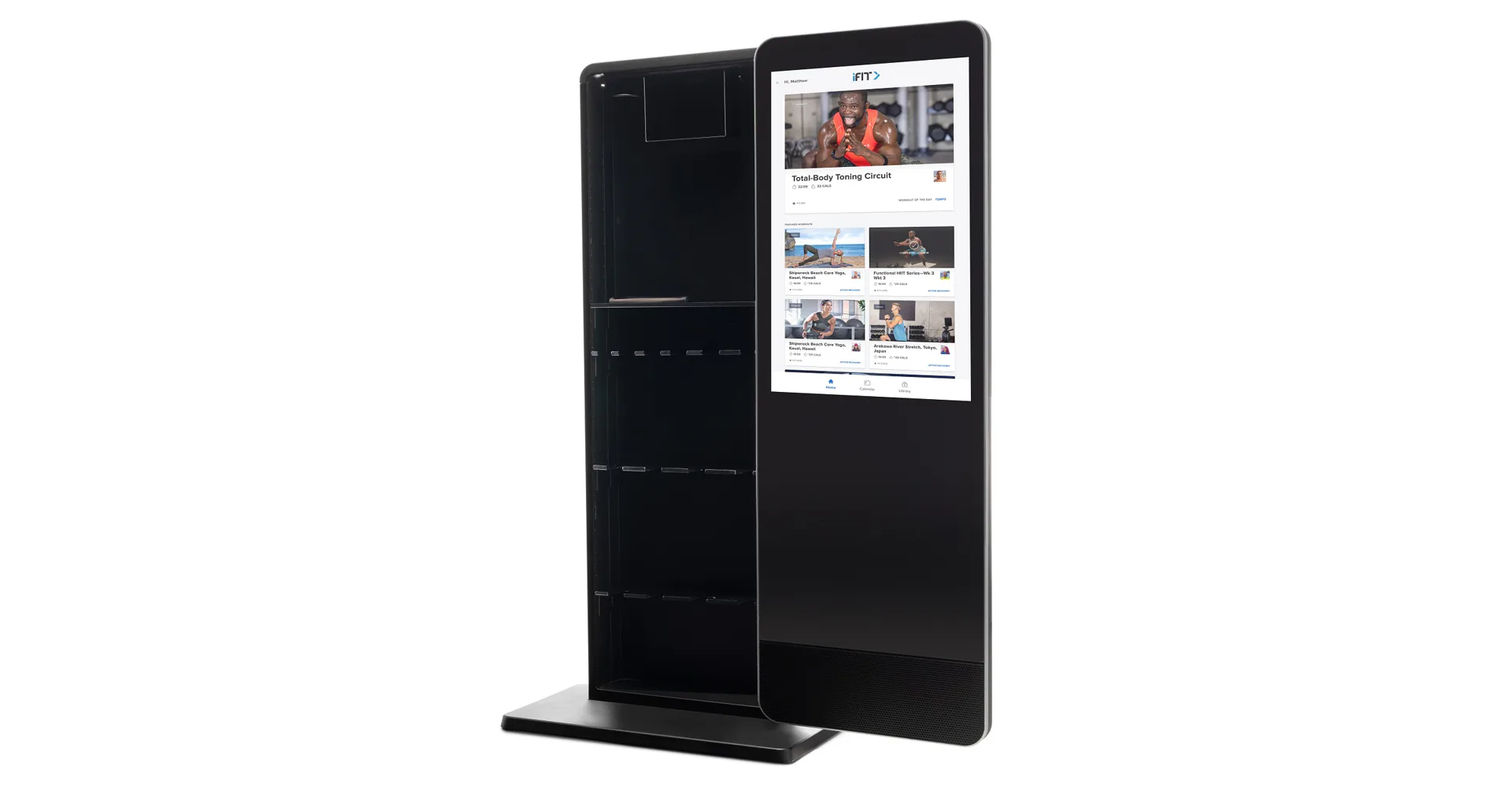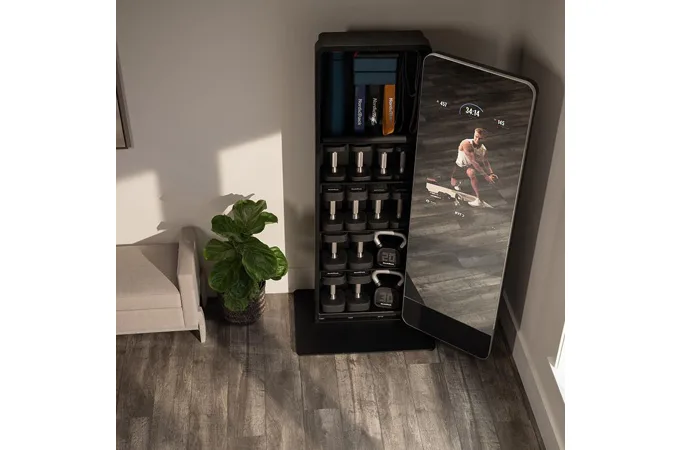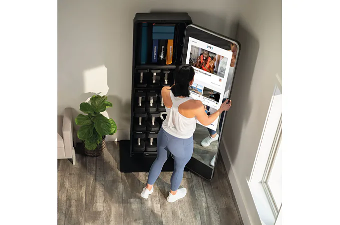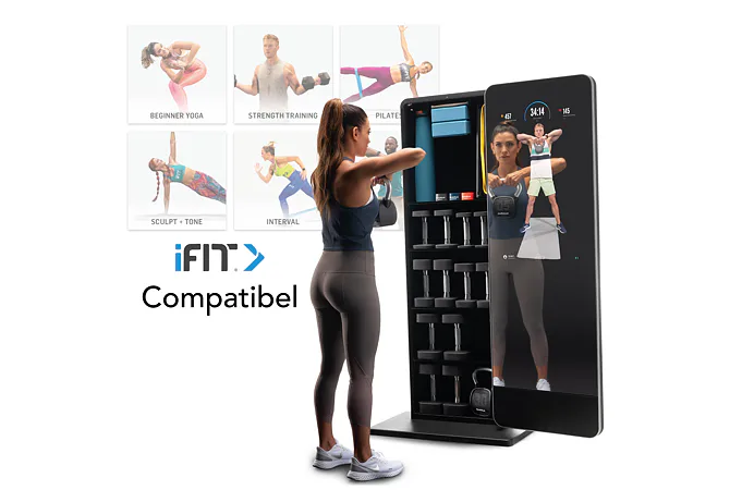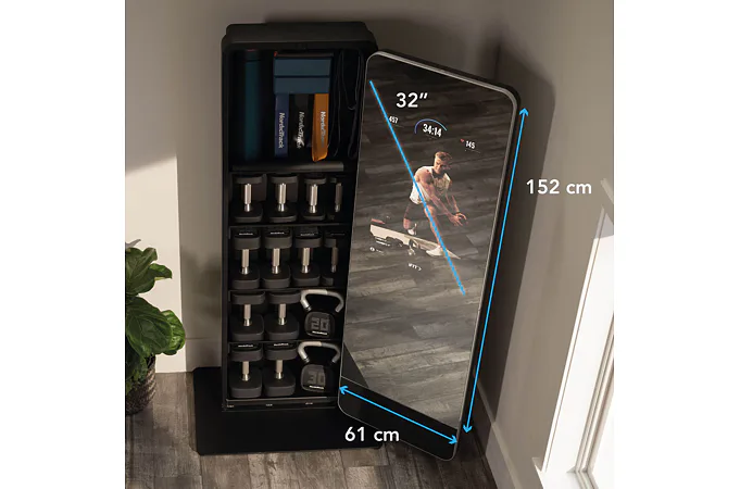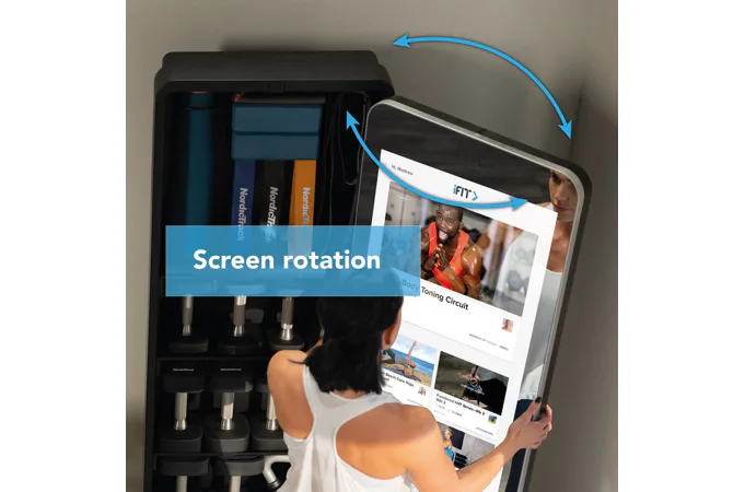 Valut má 32" dotykový displej s přístupem k široké škále iFit tréninků, aby vaše cvičení bylo efektivnější a zábavnější. Celé zrcadlo je otočné o 180° a za ním je prostor s policemi, kam můžete úhledně uložit všechny cvičební pomůcky a šetříte tak váš obytný prostor.
