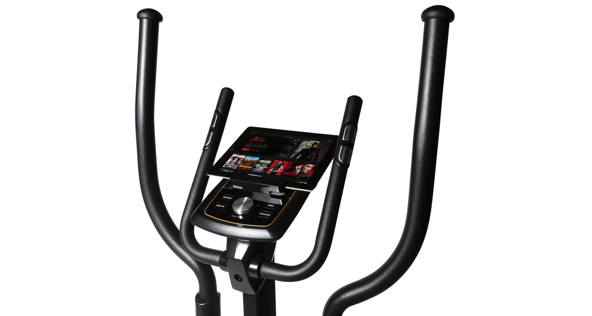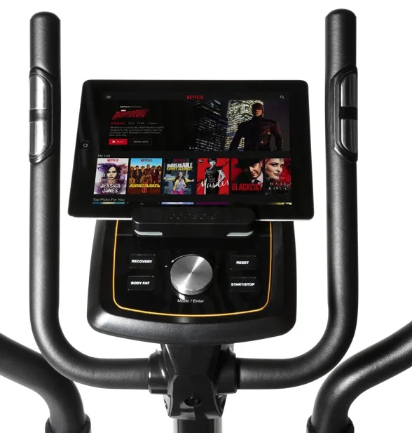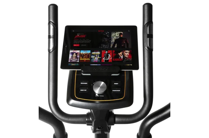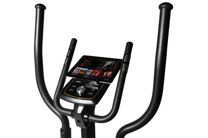 Eliptický trenažér Flow Fitness Avoriaz i je vybaven přehledným počítačem s držákem na tablet, bohatou programovou nabídkou a možností využívat tréninkové aplikace pro rozmanitost tréninku. Dále jeho součástí jsou senzory na měření tepové frekvence, držák na lahev, transportní kolečka a vyrovnávače nerovnosti.