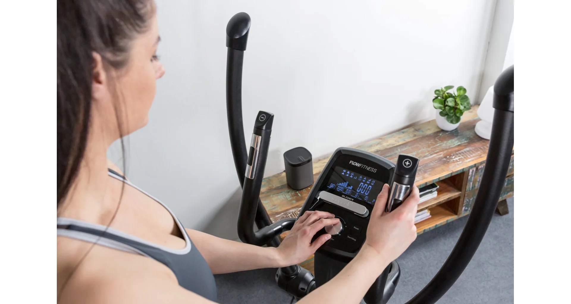 Eliptický trenažér Flow Fitness DCT2500i vyhovuje drobnějším i vyšším postavám, pohodlně si na něm zacvičí osoby od 150 cm do 200 cm.