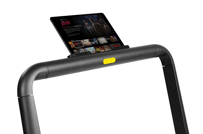Madlo tohoto běžeckého pásu je vybaveno držákem na tablet. Díky Bluetooth zařízení můžete běžecký pás propojit s vaším telefonem.