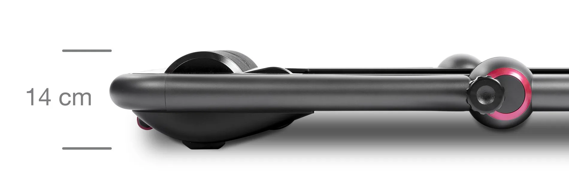 Díky jeho kompaktní velikosti 14 cm jej můžete po cvičení snadno složit a schovat pod gauč nebo postel.