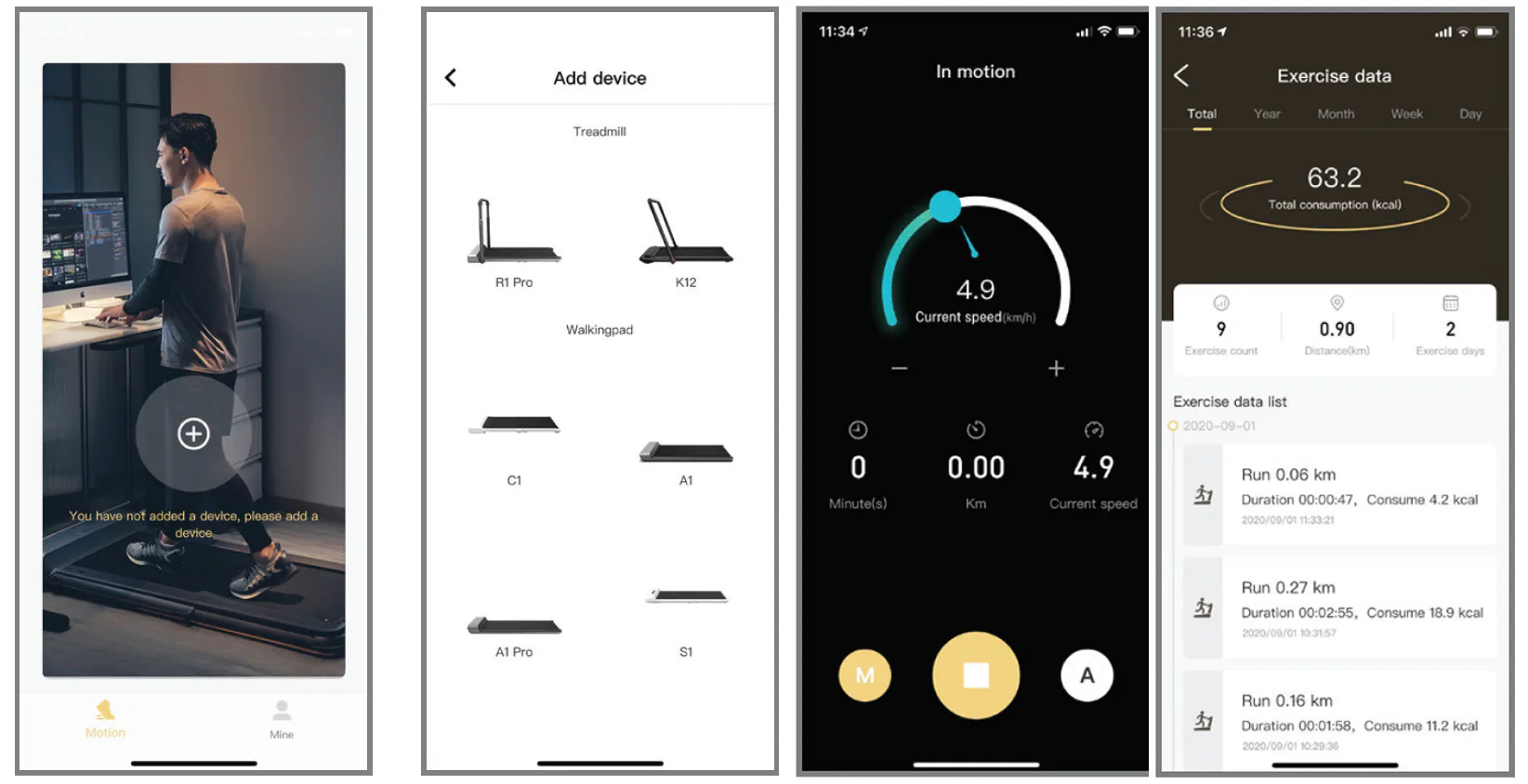 Trenažér má velmi tichý motor s maximálním výkonem 2,0 HP (1,47 kW) / trvalý 1,0 HP (0,74 kW). Rychlost lze upravovat dálkovým ovladačem v rozmezí 0,8 – 12 km/h, nebo skrz intuitivní ovládání trenažéru.