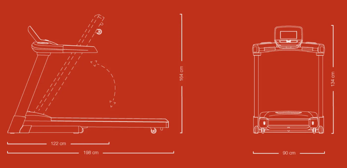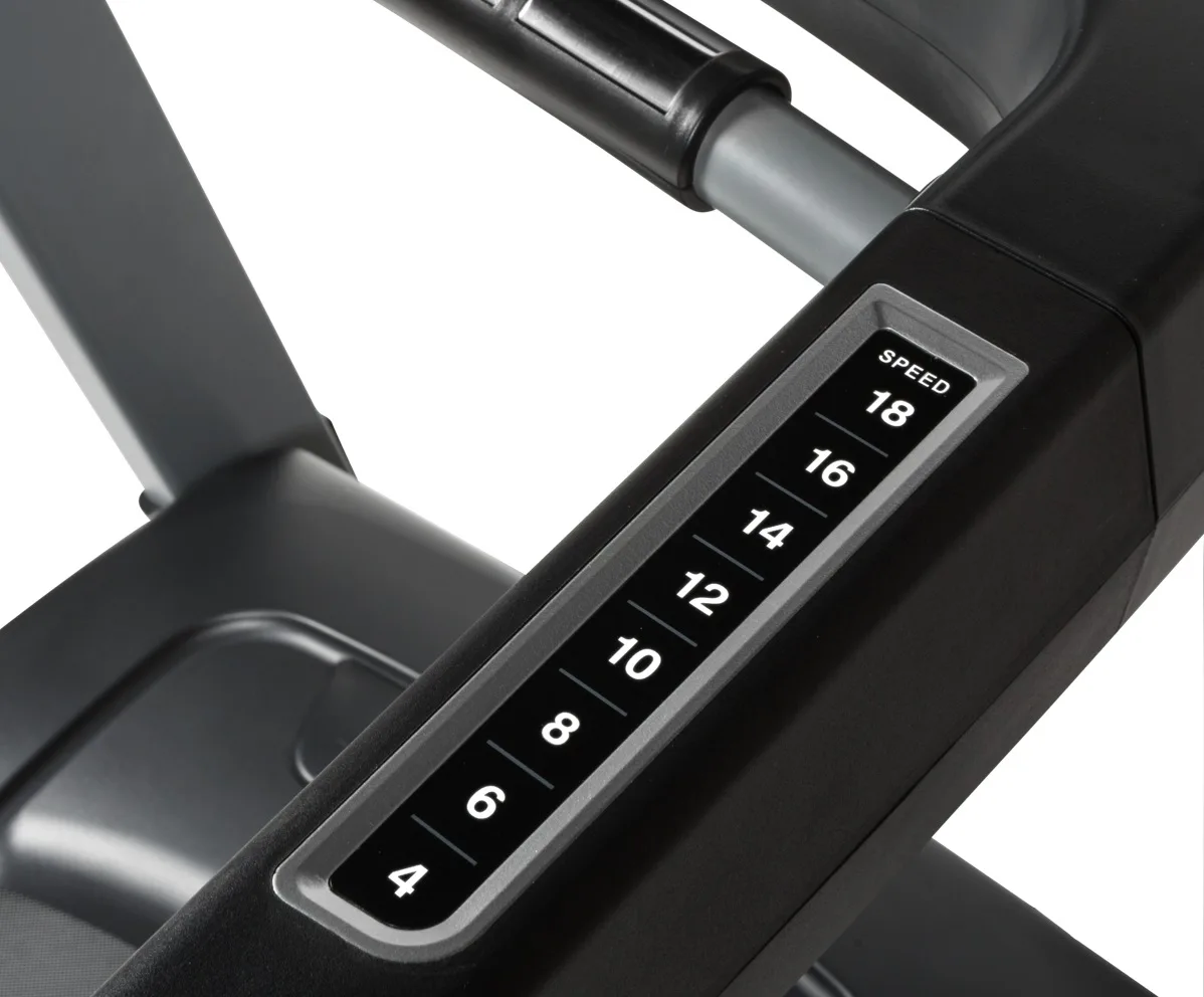 Trenažér má tichý vysoce výkonný motor Hybrid Drive 4.5 s max. výkonem 4,5 HP (3,31 kW) / trvalý 2,5 HP (1,84 kW). Rychlost lze upravovat v rozmezí 0,8-20 km/h. Prostorná běžecká plocha s rozměry 52 x 145 cm je komfortně odpružená a elektronicky regulovatelná až do sklonu 15 %. Masivní konstrukce disponuje vysokou nosností.