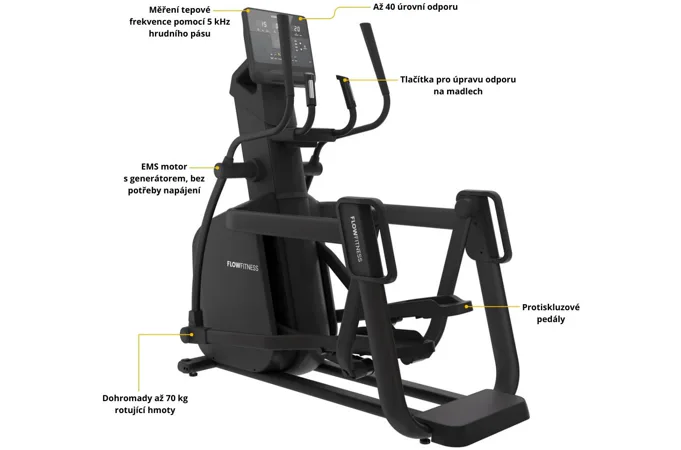 FLOW FITNESS X6i je profesionální eliptický trenažér. Ať už toužíte po aerobním tréninku s nízkou intenzitou nebo intervalový trénink s vysokou intenzitou, tento prémiový eliptický stroj to zvládne všechno. Uspokojí každého začínajícího i profesionálního cvičence.