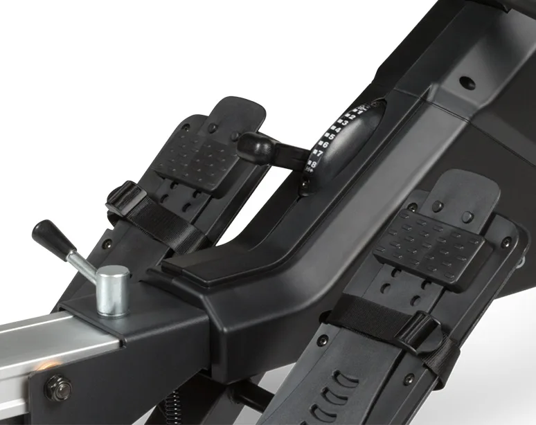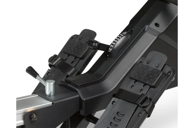 Pohodlný posed a pocit jistoty při veslování zajišťuje široké, ergonomicky tvarované sedlo a nastavitelné, profesionální protiskluzové nášlapy pro správné zafixování nohou.