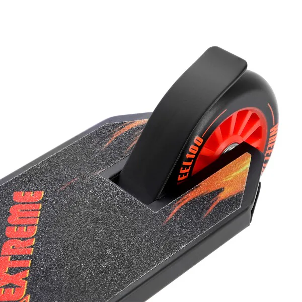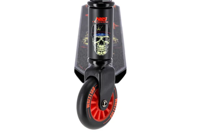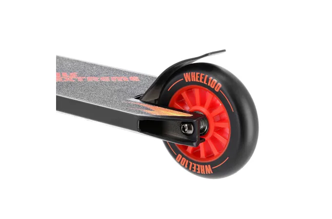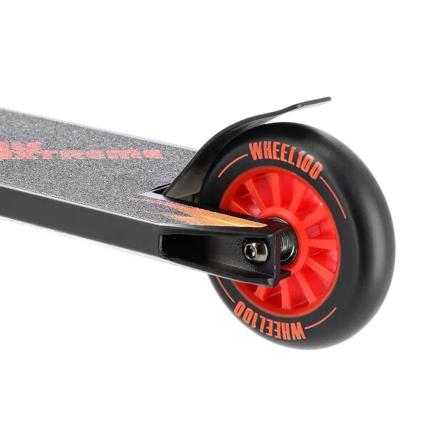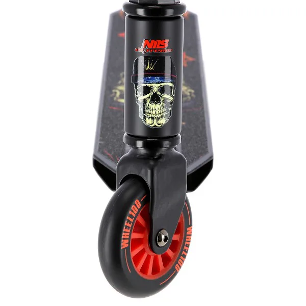 NILS Extreme HS100-5 je freestyle kolobežka s nosnosťou 100 kg a je tak vhodná ako pre deti, tak aj pre dospelých. Konštrukcia je vyrobená zo silnej a trvanlivej ocele. Model HS100-5 je vhodný na asfalt a dlažbu. Kolieska o rozmere 100 x 24 mm sú osadené ložiskami ABEC 7, bezpečnosť zaručuje zadná prítlačná (blatník) brzda. NILS Extreme HS100-5 je vďaka malým, rýchlym kolieskam, robustná, pevná konštrukcia a riadidlám pretáčajúcim sa o 360 ° určená na vykonávanie trikov.