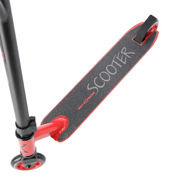 NILS Extreme HS102 je freestyle kolobežka s nosnosťou 100 kg a je tak vhodná ako pre deti, tak aj pre dospelých. Konštrukcia je vyrobená zo silnej a trvanlivej ocele. Model HS104 je vhodný na asfalt a dlažbu. Kolieska o rozmere 100 x 24 mm sú osadené ložiskami ABEC 7, bezpečnosť zaručuje zadná prítlačná (blatník) brzda. NILS Extreme HS102 je vďaka malým, rýchlym kolieskam, robustná, pevná konštrukcia a riadidlám pretáčajúcim sa o 360 ° určená na vykonávanie trikov.