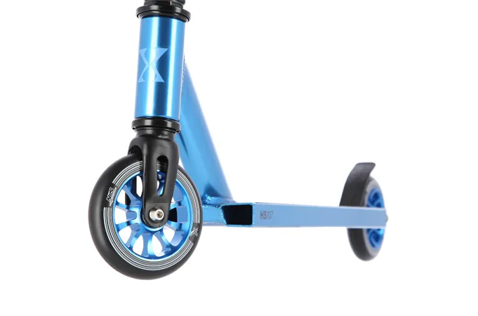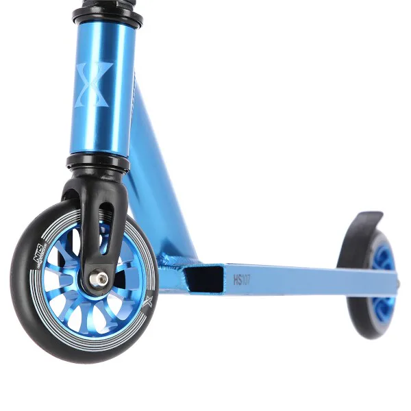 NILS Extreme HS107 je freestyle kolobežka s nosnosťou 100 kg a je tak vhodná ako pre deti, tak aj pre dospelých. Konštrukcia je vyrobená zo silnej a trvanlivej ocele. Model HS107 je vhodný na asfalt a dlažbu. Kolieska o rozmere 110 x 24 mm majú hliníkový stred a sú osadené ložiskami ABEC 9, bezpečnosť zaručuje zadná prítlačná (blatník) brzda. NILS Extreme HS107 je vďaka malým, rýchlym kolieskam, robustná, pevná konštrukcia a riadidlám pretáčajúcim sa o 360 ° určená na vykonávanie trikov.