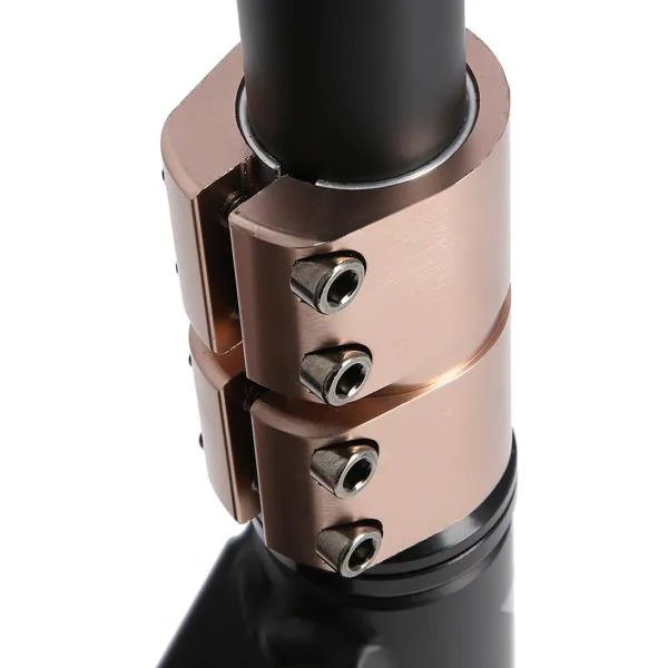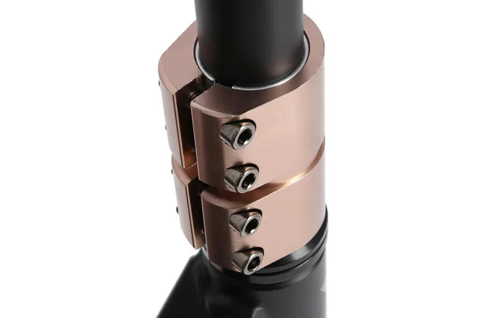 Riadidlá sú k hliníkovej, bezzávitovej vidlici pripevnené pomocou 4-skrutkovej SCS svorky s vložkou a dajú sa tak ľahko vymeniť. Robustný deck má dve priečky a tri komory. Nylónové gripy sú nasúvacie so skrutkovacími objímkami.