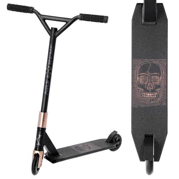 NILS Extreme HS115 je freestyle kolobežka s nosnosťou 100 kg a je tak vhodná ako pre deti, tak aj pre dospelých. Konštrukcia je vyrobená zo silnej a trvanlivej ocele. Model HS115 je vhodný na asfalt a dlažbu. Kolieska o rozmere 110 x 24 mm majú hliníkový stred a sú osadené ložiskami ABEC 9, bezpečnosť zaručuje zadná prítlačná (blatník) brzda. NILS Extreme HS115 je vďaka malým, rýchlym kolieskam, robustná, pevná konštrukcia a riadidlám pretáčajúcim sa o 360 ° určená na vykonávanie trikov.