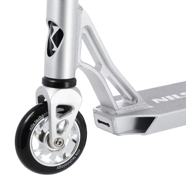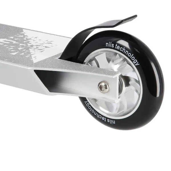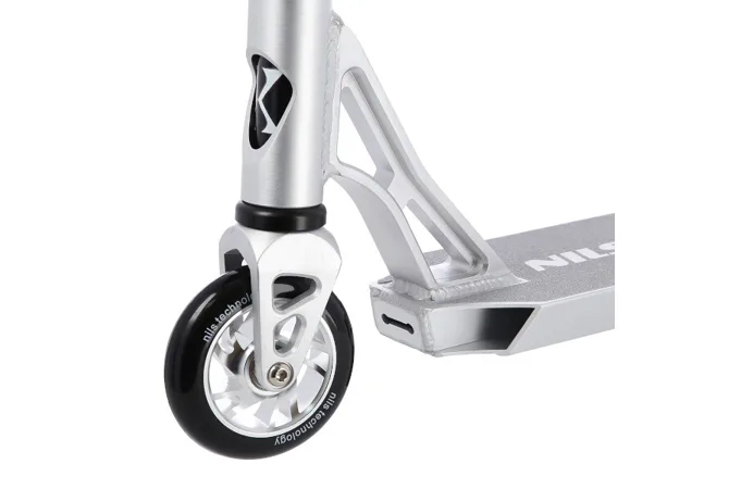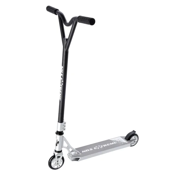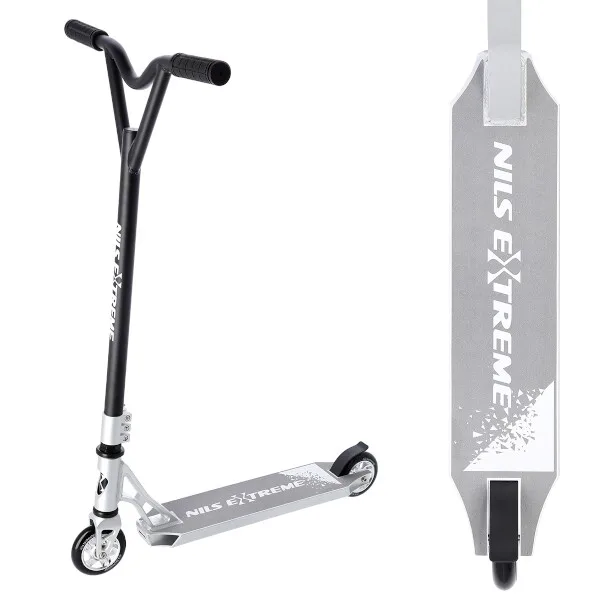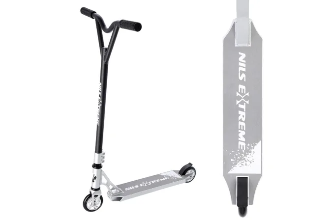 NILS Extreme HS120 je freestyle kolobežka s nosnosťou 100 kg a je tak vhodná ako pre deti, tak aj pre dospelých. Konštrukcia je vyrobená zo silnej a trvanlivej ocele. Model HS120 je vhodný na asfalt a dlažbu. Kolieska o rozmere 100 x 24 mm sú osadené ložiskami ABEC 9, bezpečnosť zaručuje zadná prítlačná (blatník) brzda. NILS Extreme HS120 je vďaka malým, rýchlym kolieskam, robustná, pevná konštrukcia a riadidlám pretáčajúcim sa o 360 ° určená na vykonávanie trikov.