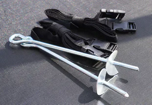 Súčasťou balenia je tiež kotviaca sada, ktorá obsahuje kolíky a textilné popruhy. Slúži na zabezpečenie trampolíny k zemi pri nepriaznivom počasí. Sada obsahuje 4 kusy kotviacich kolíkov.