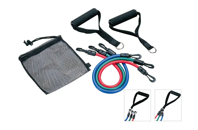 Vhodný doplnok pri aeróbnom cvičení. Aeróbne cvičenie pomáha zlepšovať výkonnosť kardiovaskulárneho systému, znižovať hladinu cholesterolu a telesného tuku, ako aj aeróbne cvičenie odbúrava stres, formuje postavu a zvyšuje celkovú pohyblivosť a pružnosť. Expander Set je ideálnym nástrojom na takéto cvičenie, zameriava sa na posilnenie hornej a dolnej polovice tela. Súprava obsahuje tri elastické pásy rôznej tuhosti/obtiažnosti a penové rukoväte na uchopenie do rúk. Technický popis:- výkon: domáce fitnes- dĺžka: 48 cm- 3 obtiažnosti- počet kusov: 1 súprava- balenie je súčasťou balenia: áno Obtiažnosť/predvolené rozmery:- ľahké - 9.7 mm x 1,6 mm x 48 cm ( zelená )- stredná - 10,5 mm x 2,0 mm x 48 cm ( červená )- ťažká - 11,2 mm x 2,5 mm x 48 cm ( modrá )